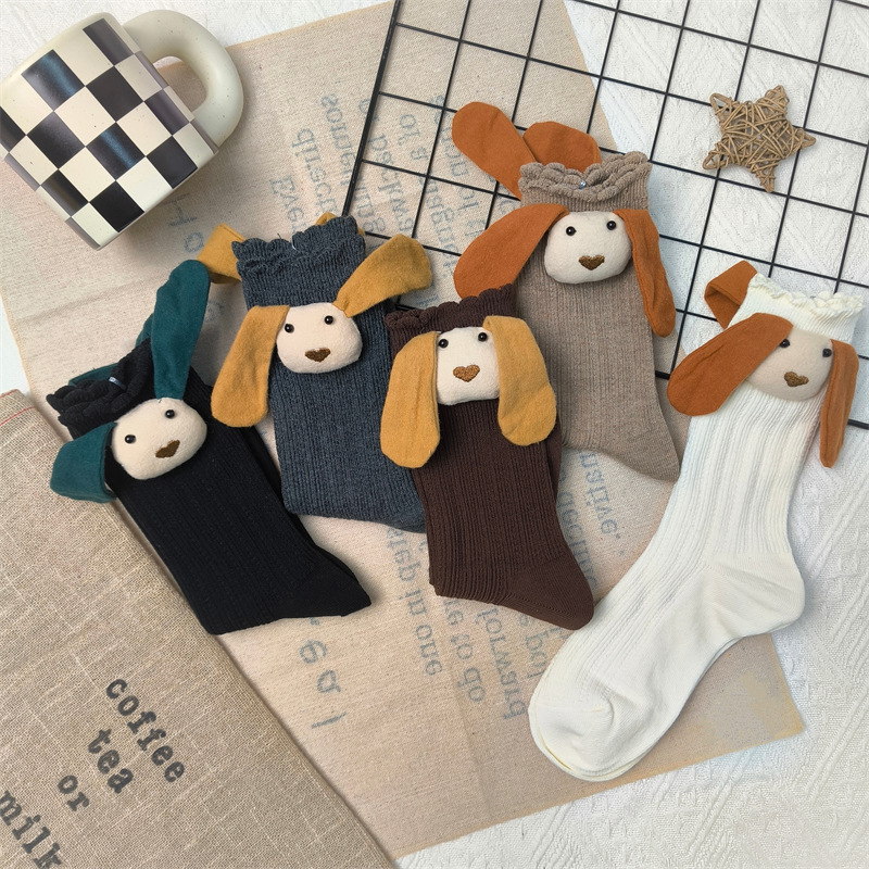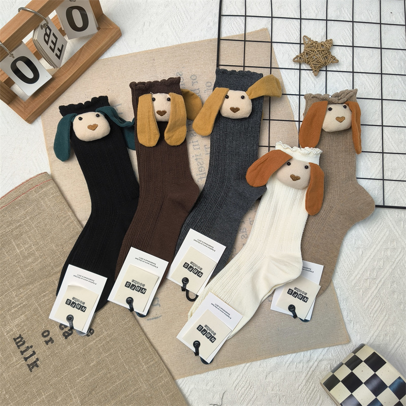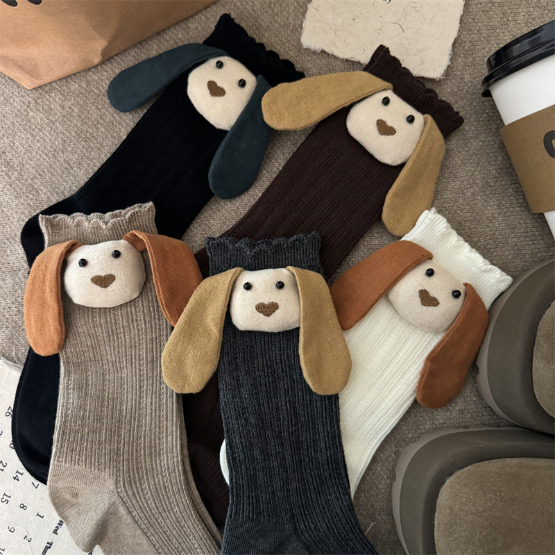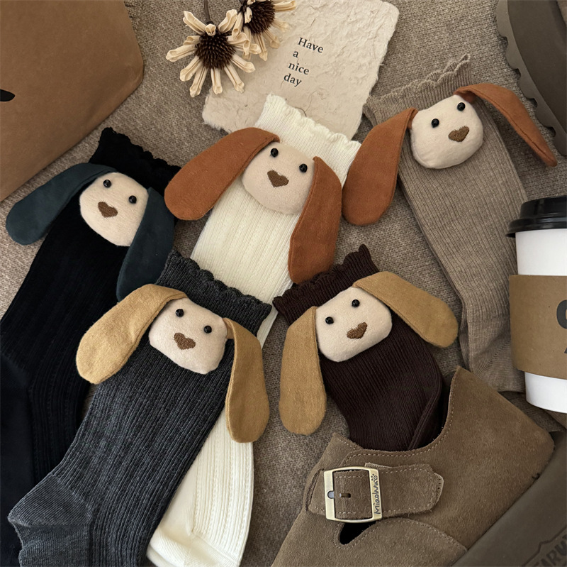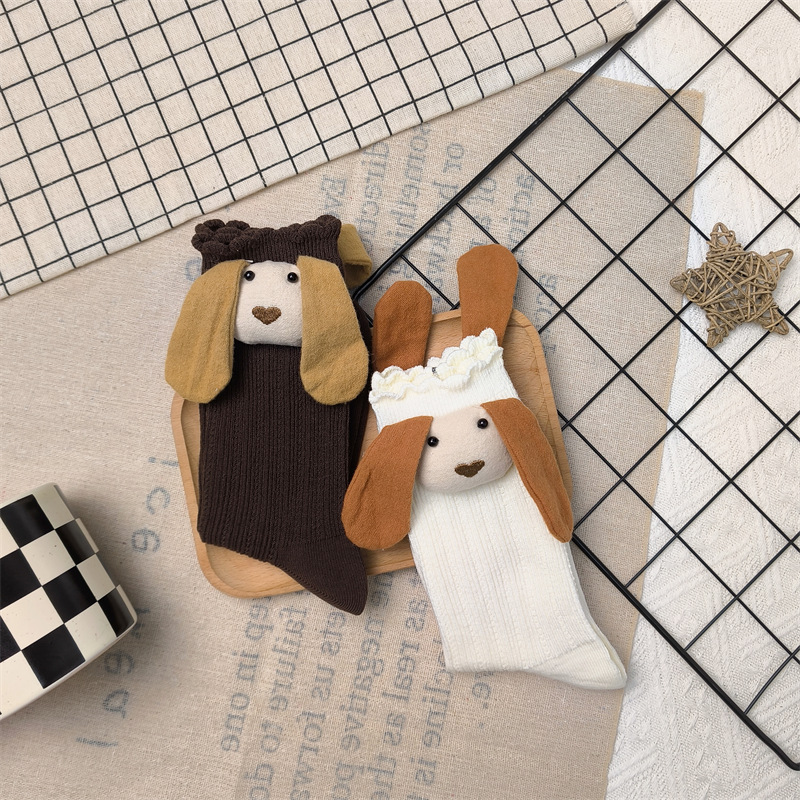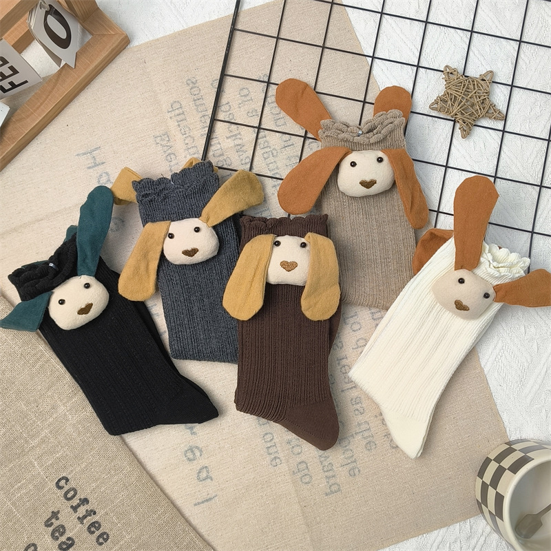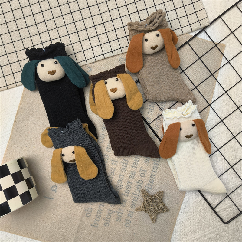 귀여운 3 차원 만화 인형 강아지 일본 빈티지 아카데미 간단한 예술적 All-Match Girly 트렌디 코튼 양말
