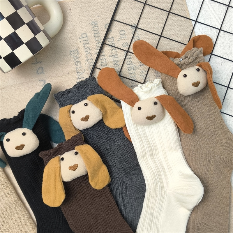 귀여운 3 차원 만화 인형 강아지 일본 빈티지 아카데미 간단한 예술적 All-Match Girly 트렌디 코튼 양말스토어 가기