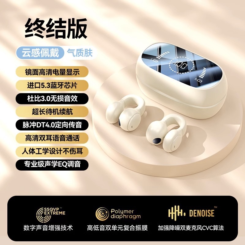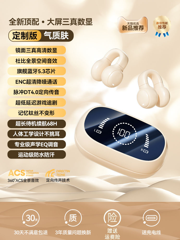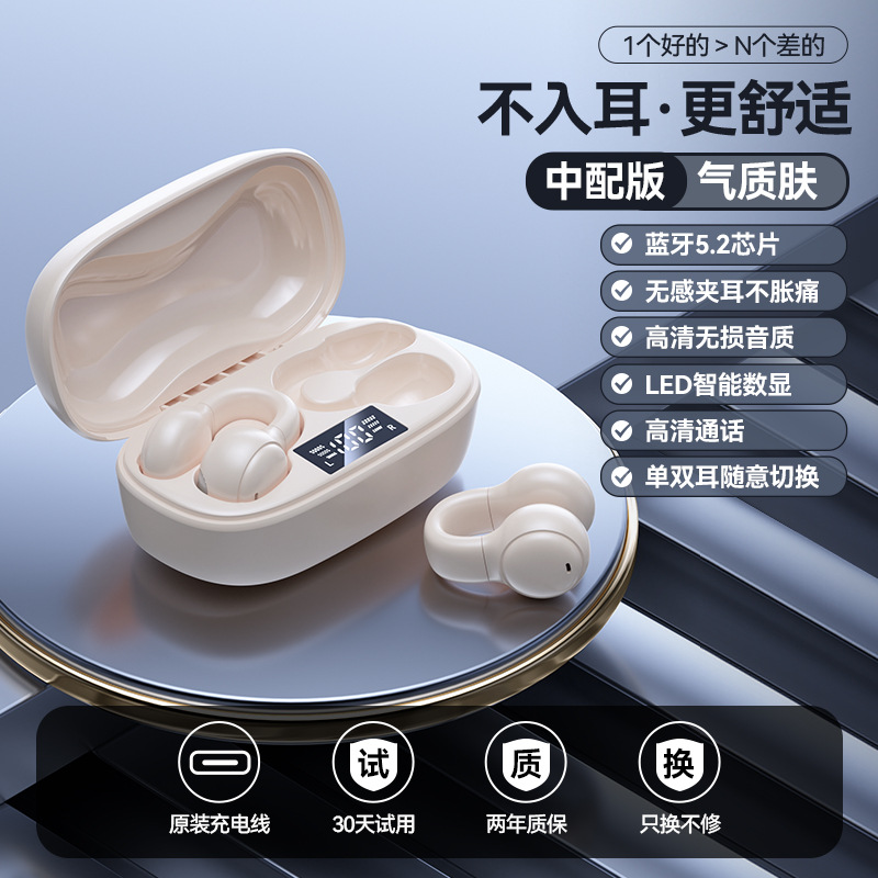 Clip-in-Ear 블루투스 헤드셋 새로운 2024 무선 뼈 전도 긴 내구성 큰 전력 Huaqiang North스토어 가기