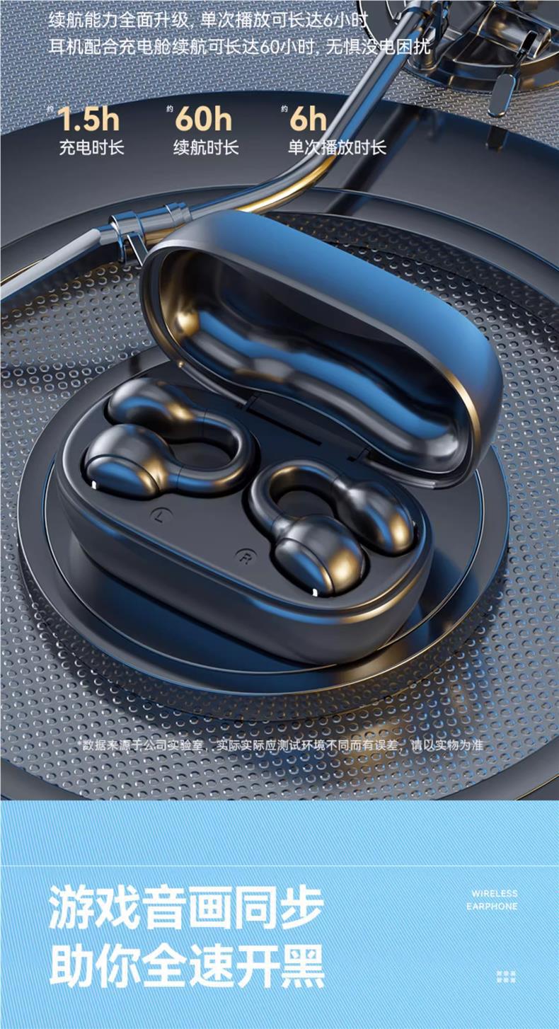 Clip-in-Ear 블루투스 헤드셋 새로운 2024 무선 뼈 전도 긴 내구성 큰 전력 Huaqiang North