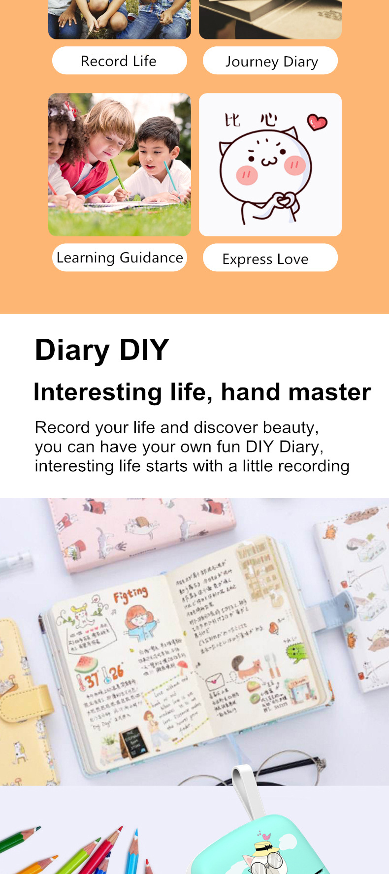 打印机1台+【自带1卷热敏纸+5卷热敏纸+5卷不干胶+3卷彩色纸+6支水彩笔+贴纸】为一整套。