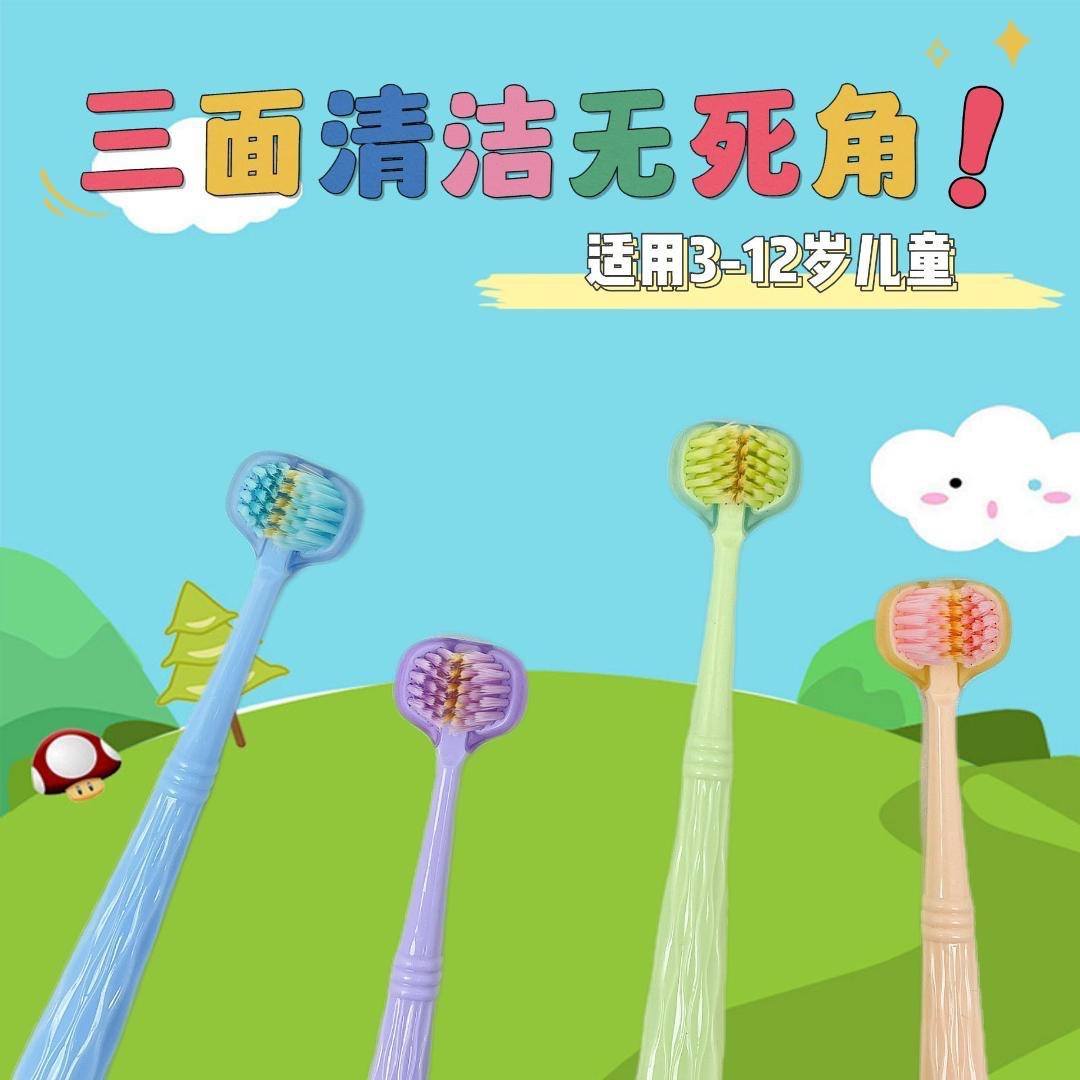 3 면 어린이 칫솔 새 3 차원 미끄럼 방지 손잡이 가정용 아기 어린이 소프트 칫솔 공장 직접 판매