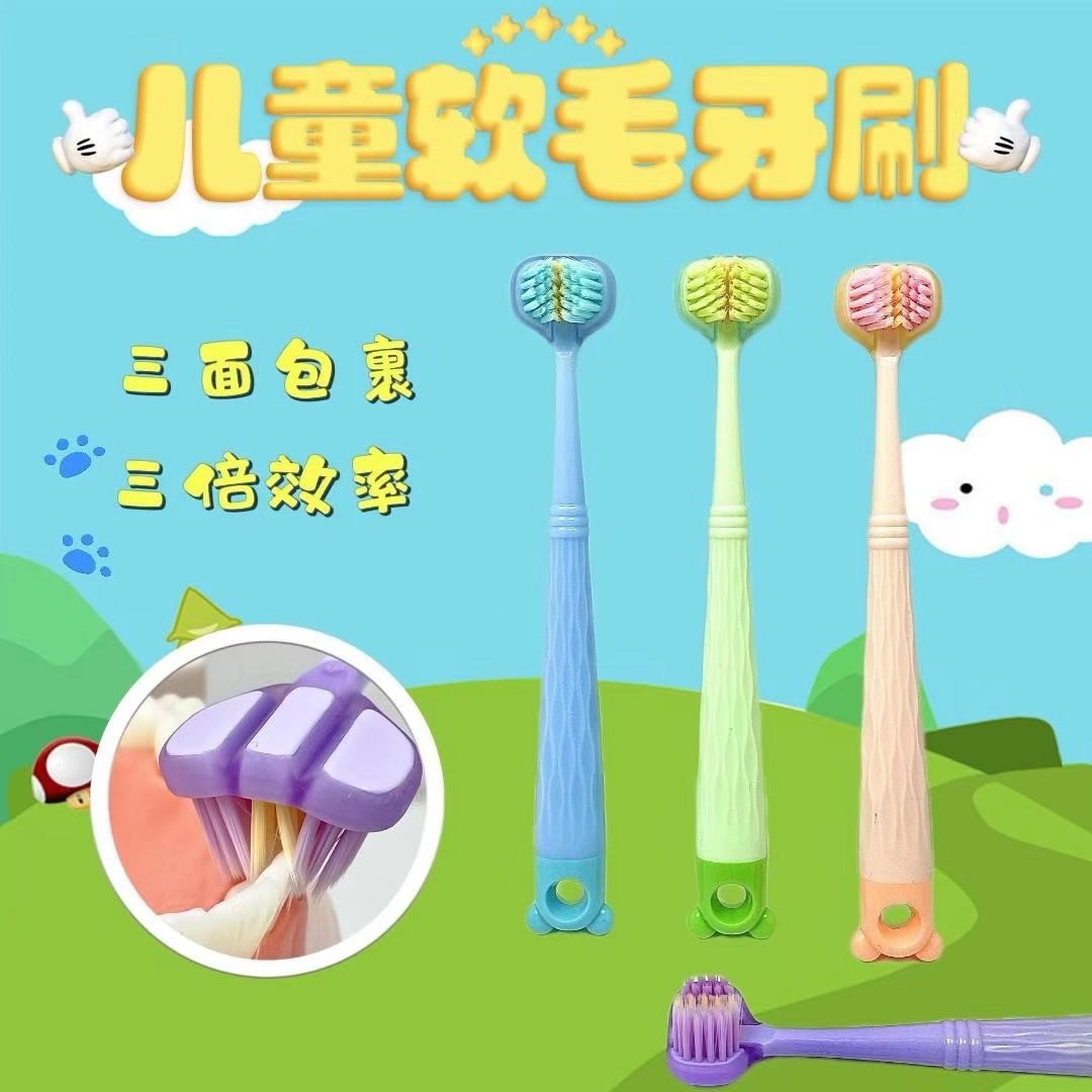 3 면 어린이 칫솔 새 3 차원 미끄럼 방지 손잡이 가정용 아기 어린이 소프트 칫솔 공장 직접 판매스토어 가기