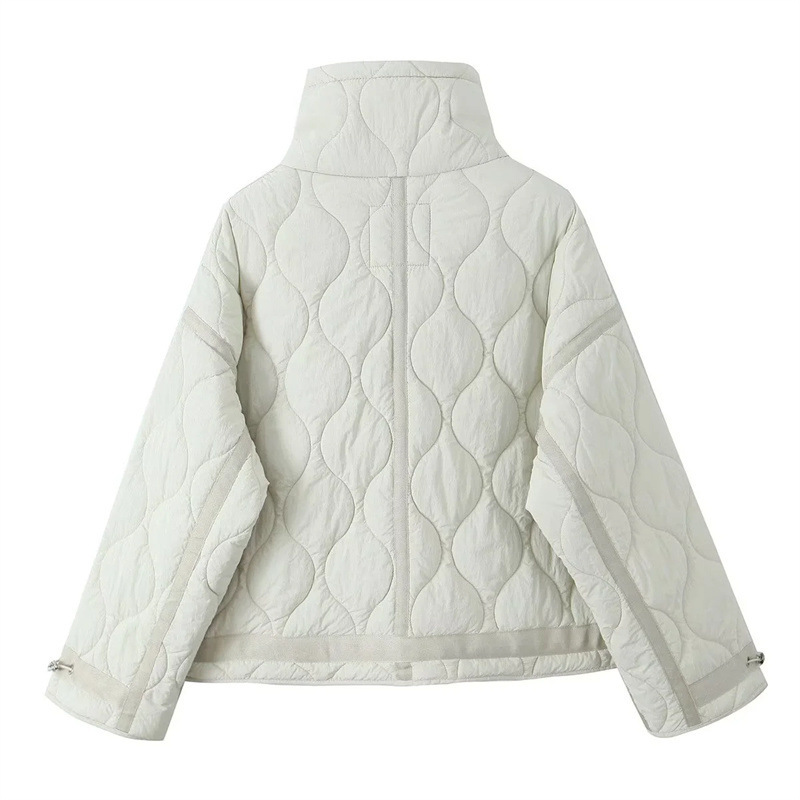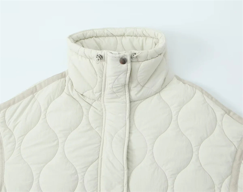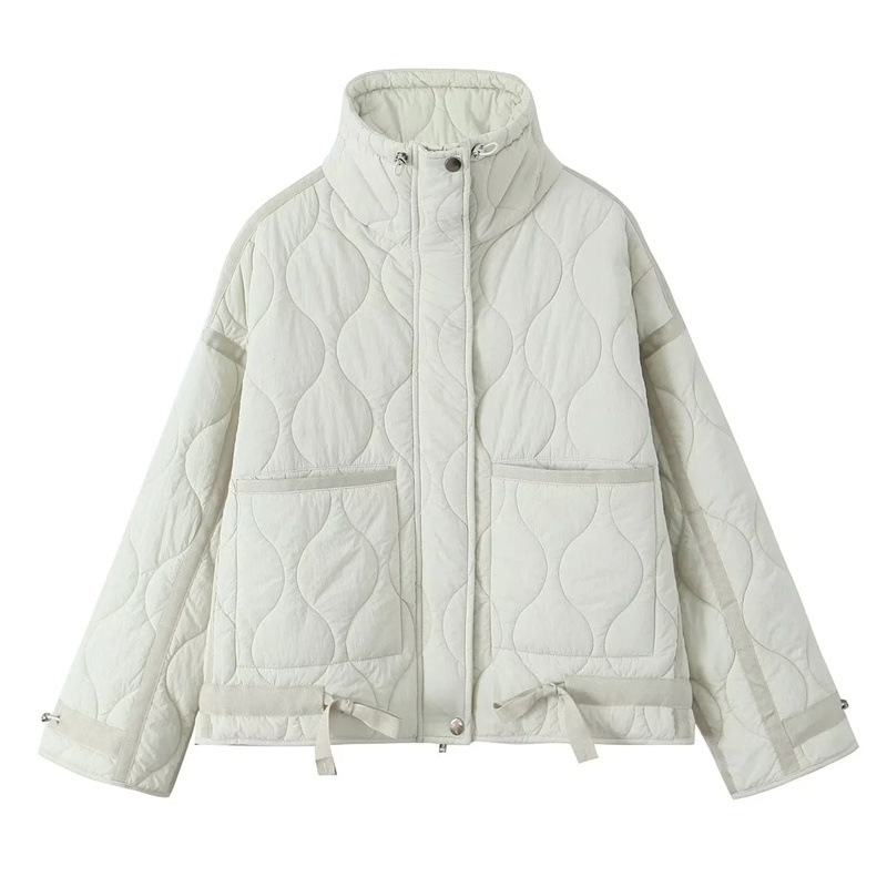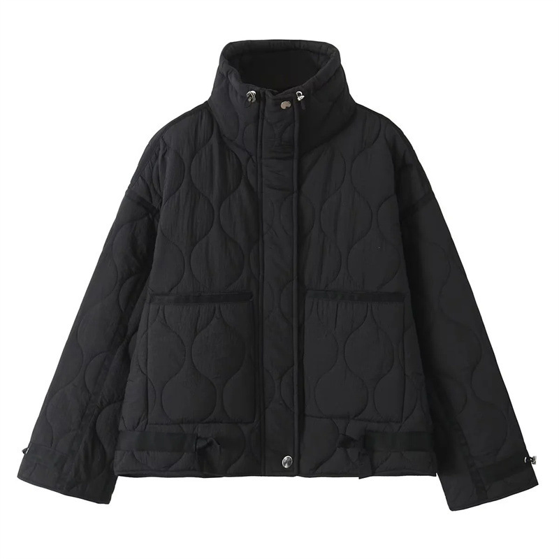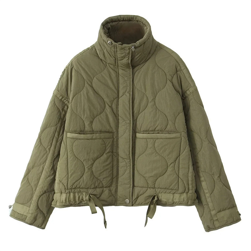 가을, 겨울 신상 여성 스타일 스탠드 칼라 퀼팅 코튼 재킷, 패셔너블한 루즈 캐주얼 코튼 재킷, 여성용 패치 포켓 장식스토어 가기