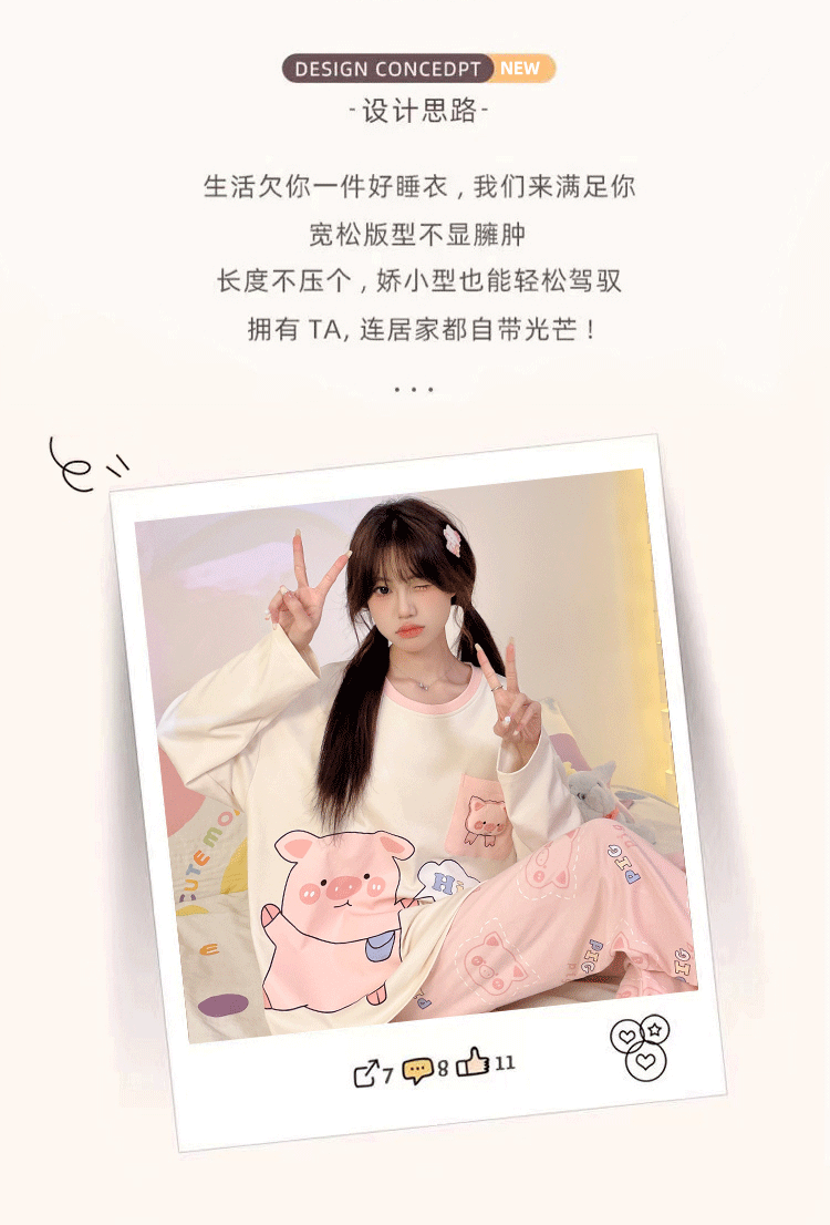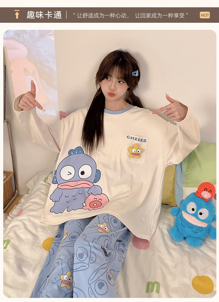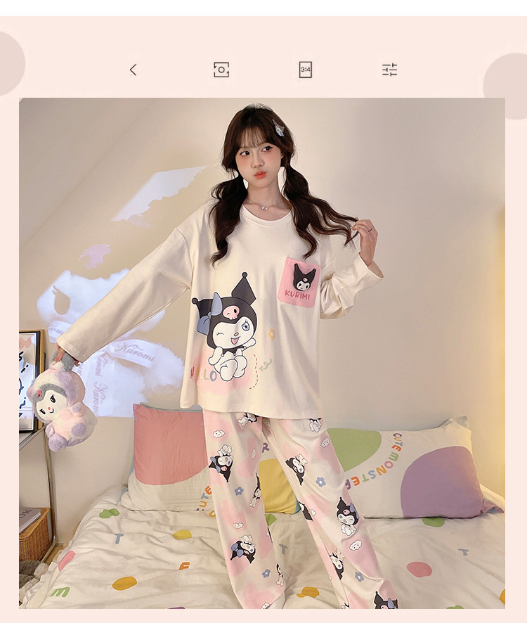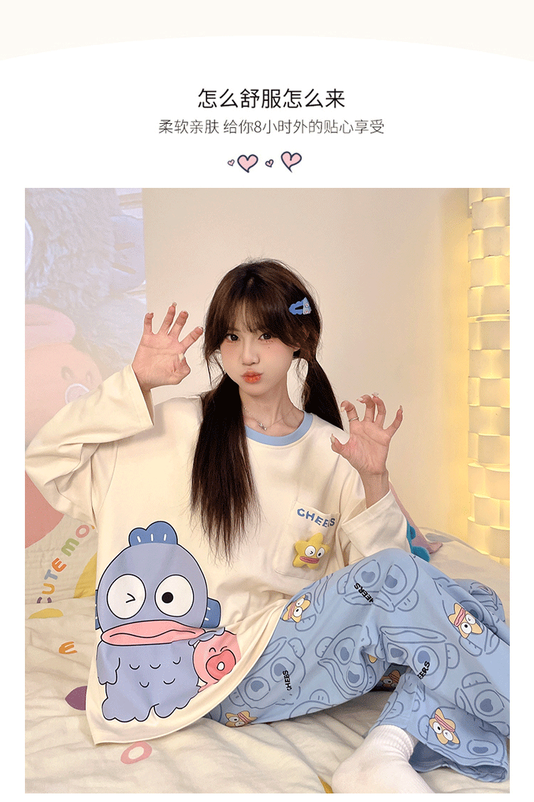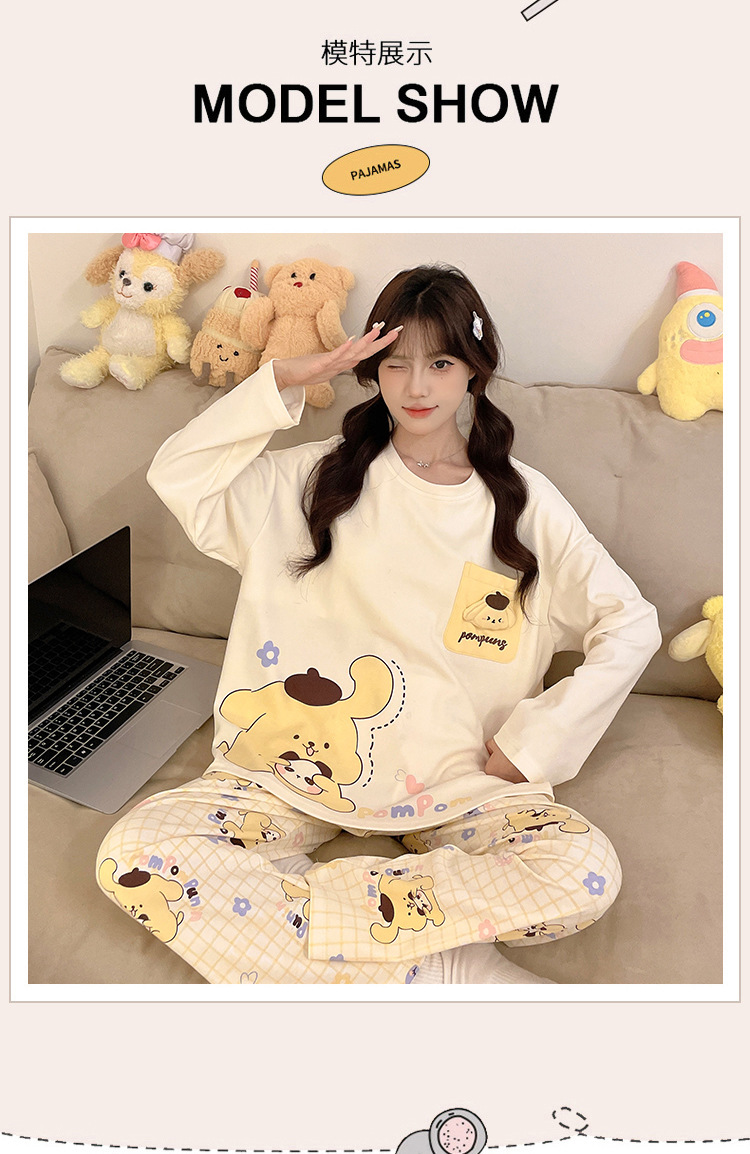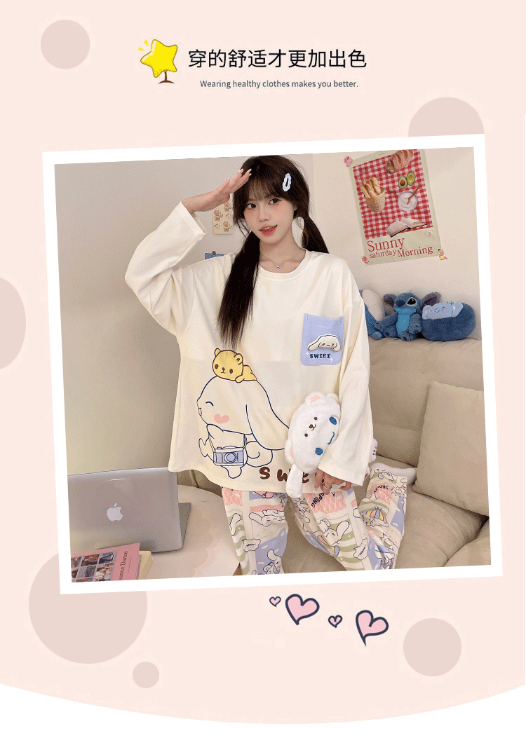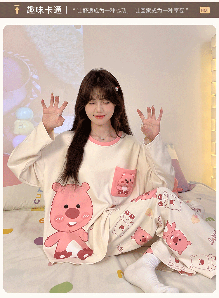 파자마 여성의 봄과 가을 2024 새로운 기숙사 세트 인형 만화 플러스 사이즈 가정 옷은 학생 밖에서 입을 수 있습니다.스토어 가기