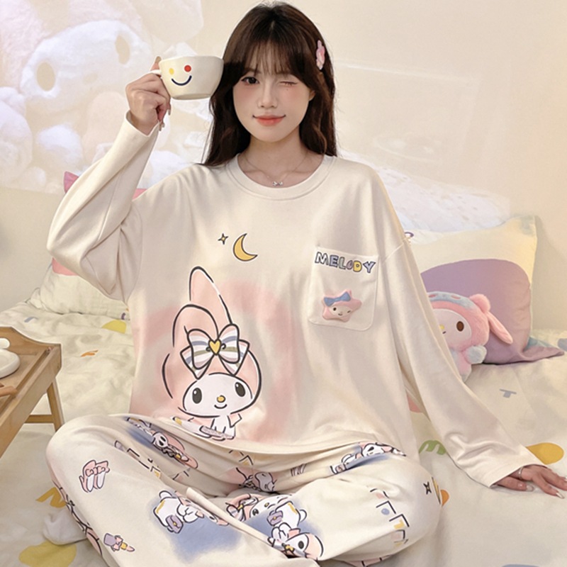 파자마 여성의 봄과 가을 2024 새로운 기숙사 세트 인형 만화 플러스 사이즈 가정 옷은 학생 밖에서 입을 수 있습니다.