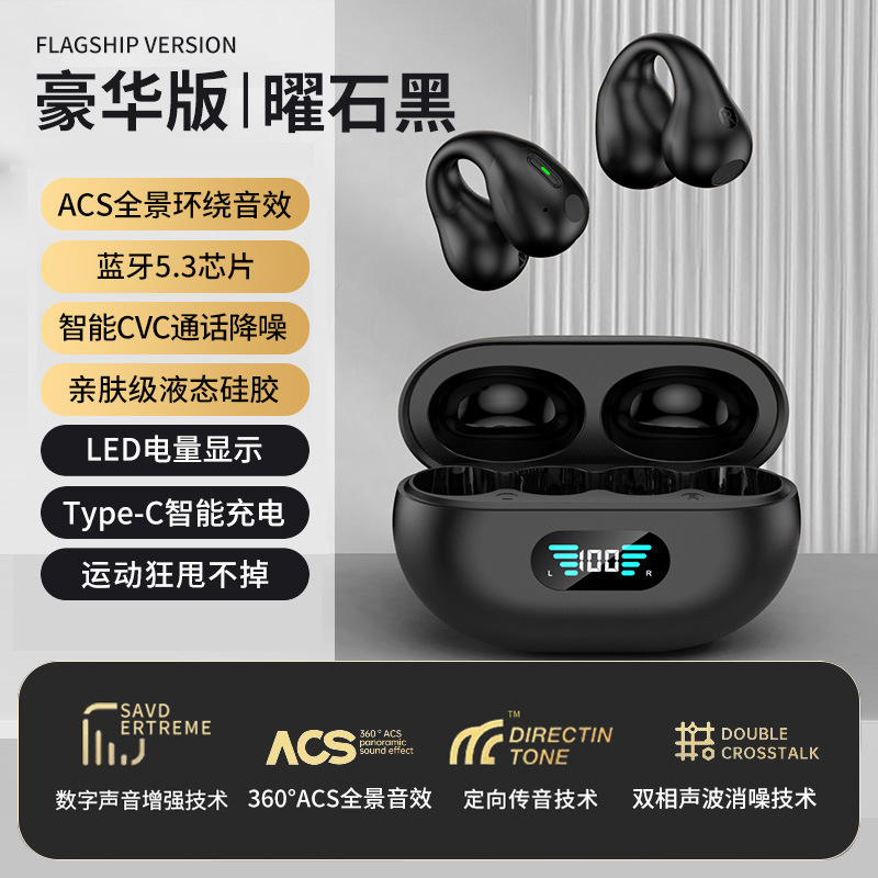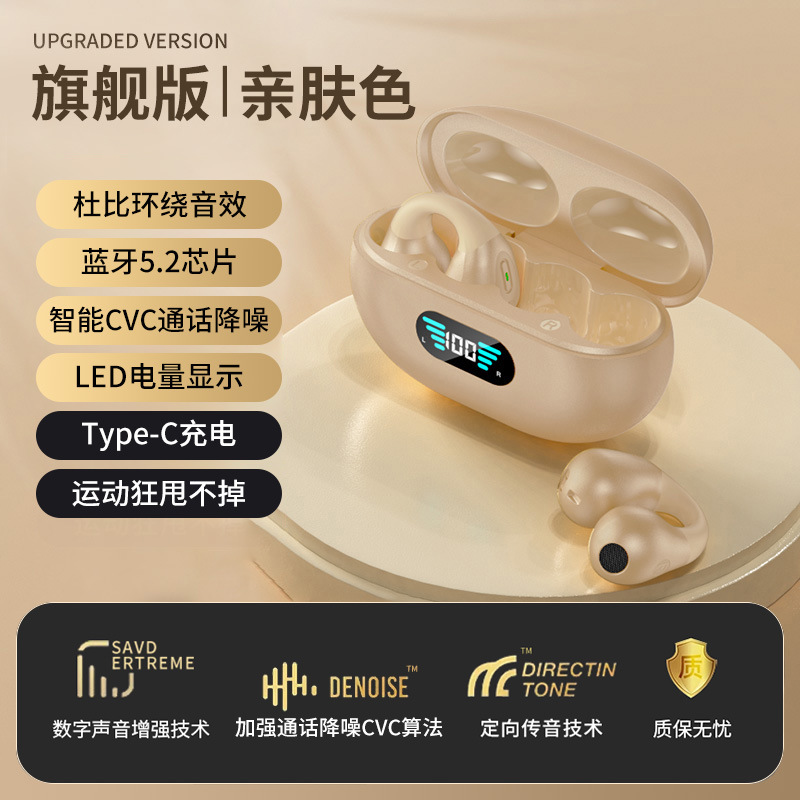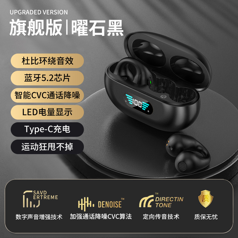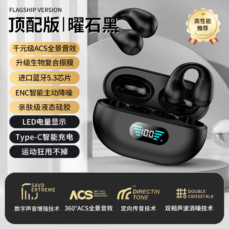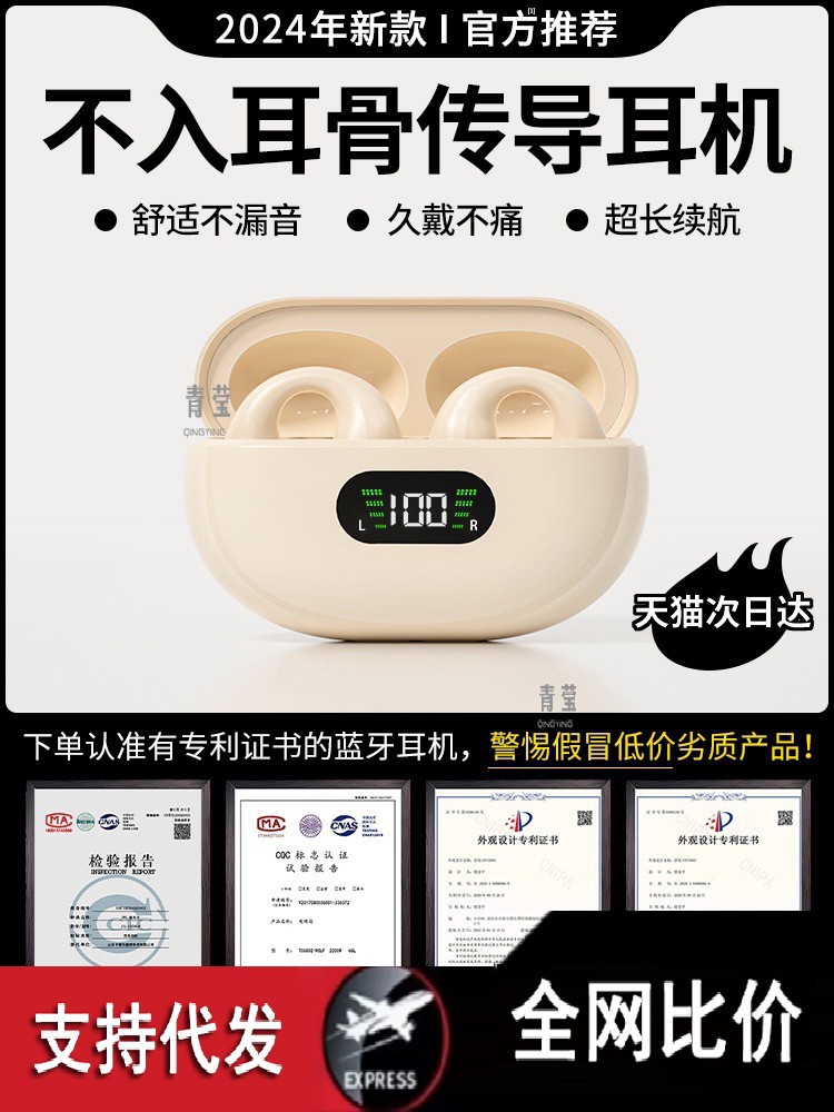 블루투스 헤드셋 2024 새로운 무선 공기 뼈 전도 귀 클립 유형 남성과 여성을위한 귀에 아닌 애플 화웨이 칭잉스토어 가기