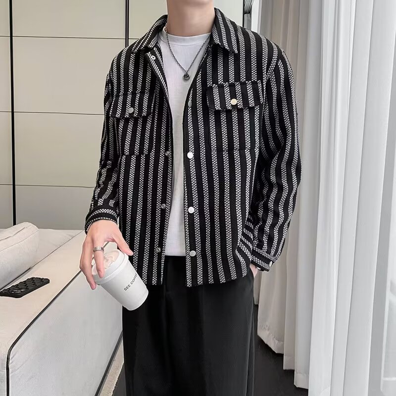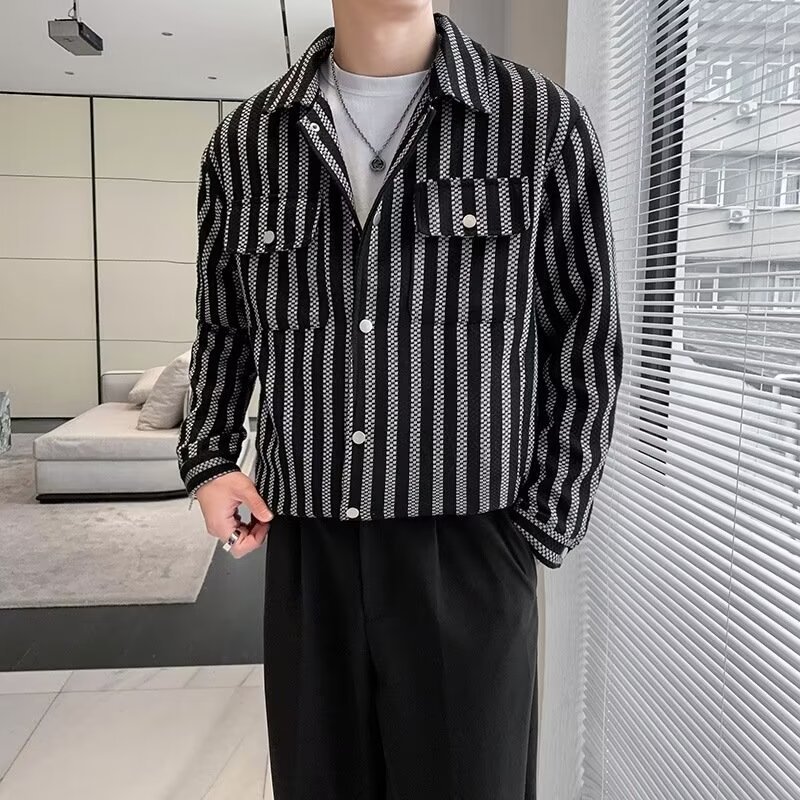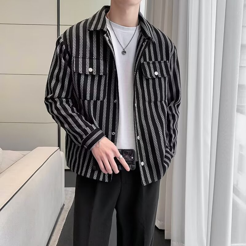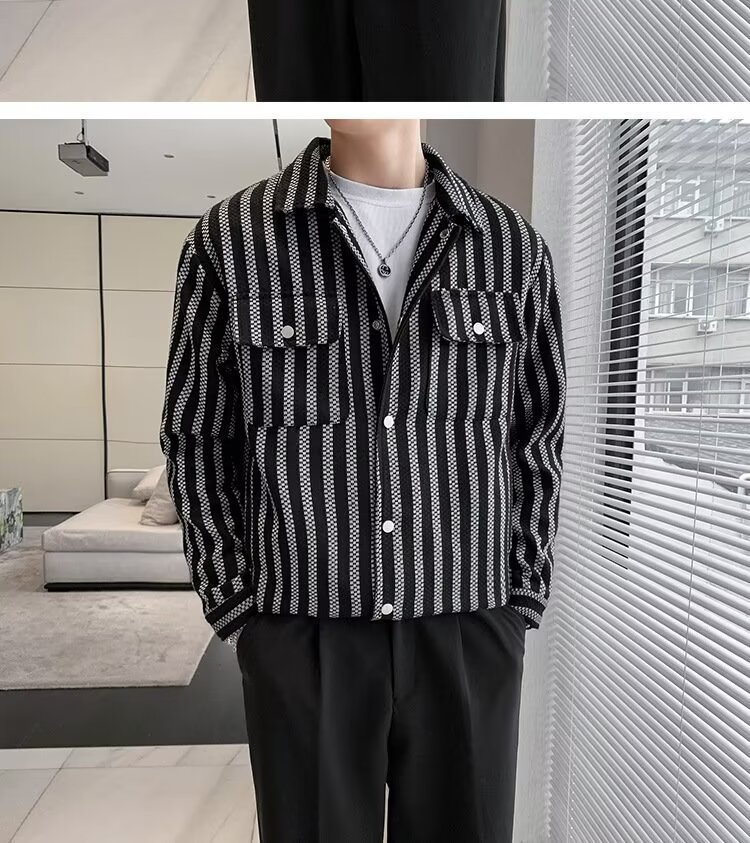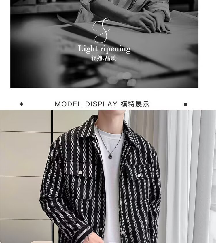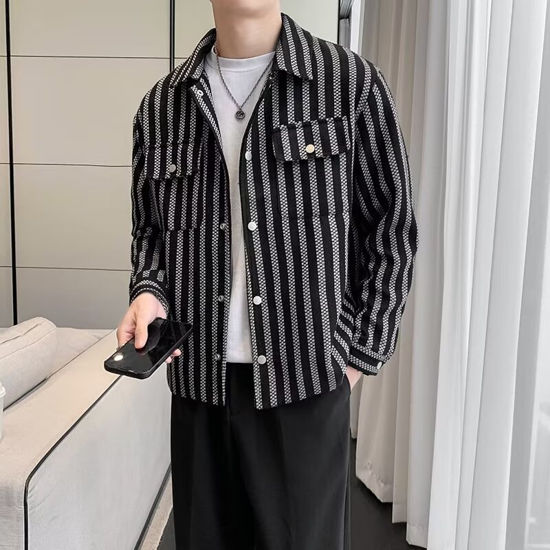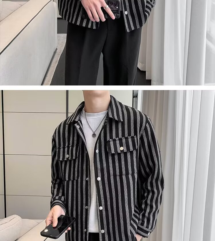 줄무늬 재킷 남자의 유행 봄과 가을 2024 새로운 봄 얇은 재킷 셔츠 남자의 유행 브랜드 어퍼 옷스토어 가기