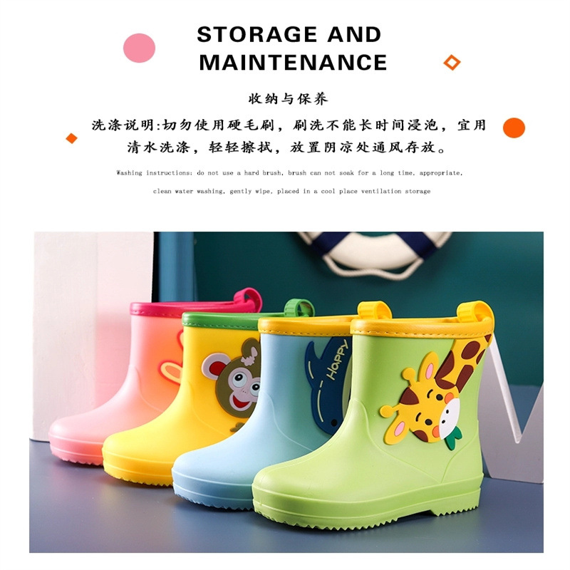 어린이 비 부츠 기린 동물 패턴 만화 장화 소년과 소녀 미끄럼 방지 워터 슈즈 기모 모든 계절에 분리 가능한 장화스토어 가기