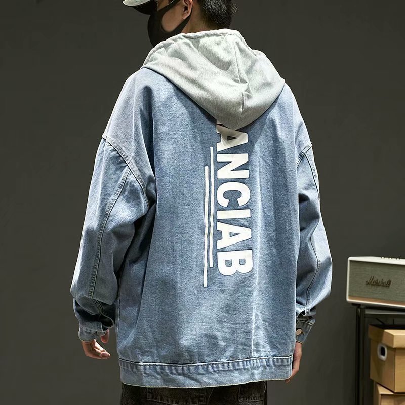 찢어진 데님 재킷 남자 10 대 한국 스타일 유행 탑 옷 일본식 홍콩 스타일 느슨한 중학생 후드 자켓스토어 가기