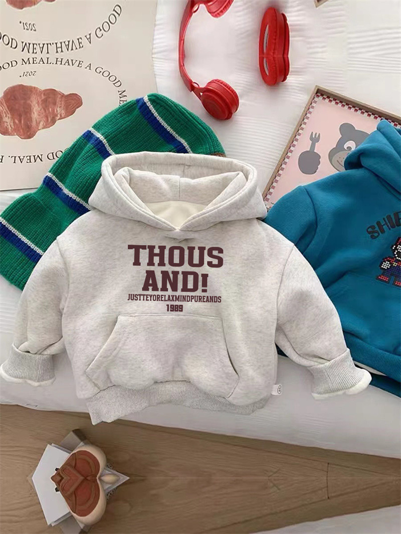 기모 어린이 두꺼운 2024 년 소년 가을 겨울 새 소녀 후드 땀 원피스 베이비 재킷 웨스턴 스타일스토어 가기
