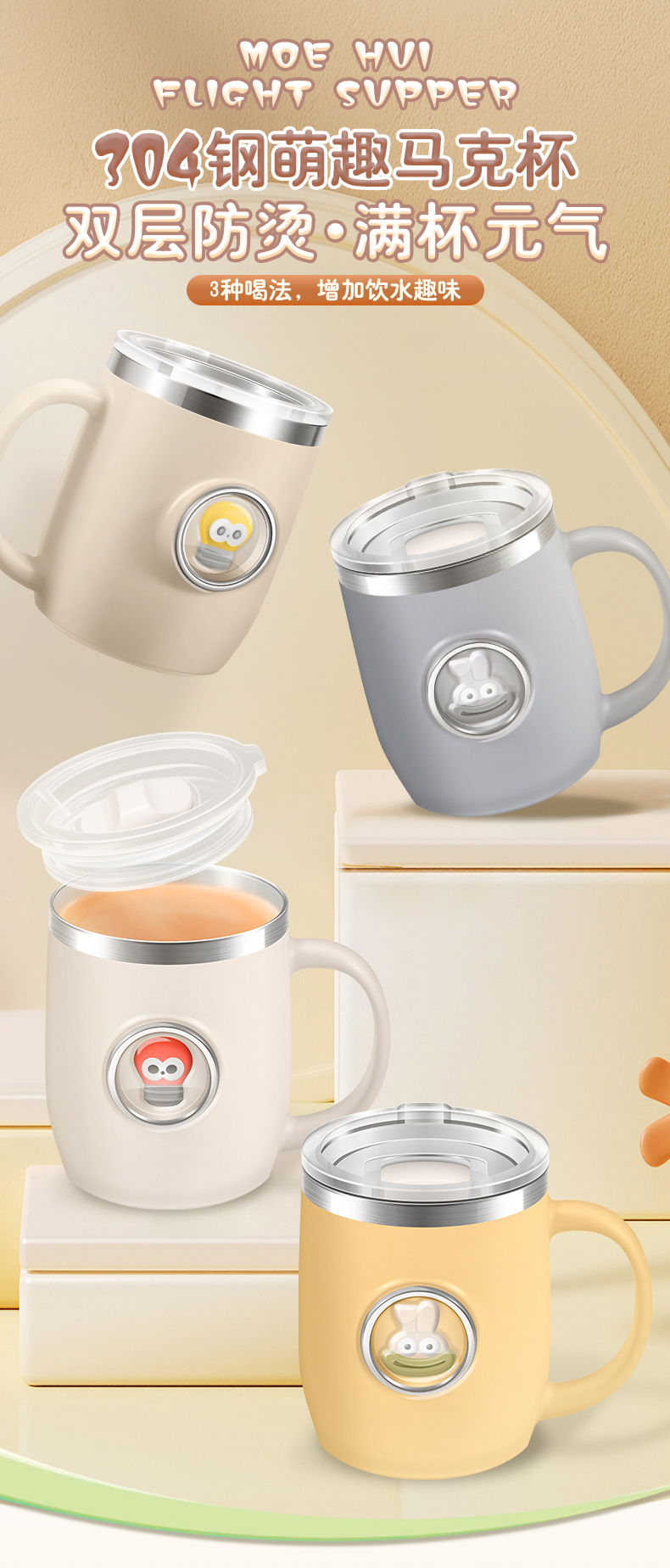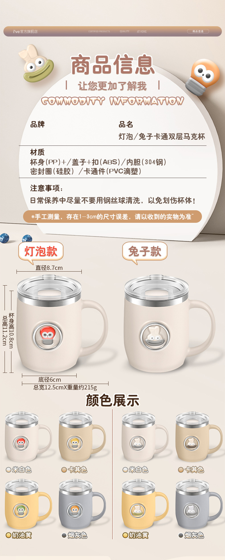 • 304 스틸 더블 레이어 머그 [토끼-라이트 옐로우]