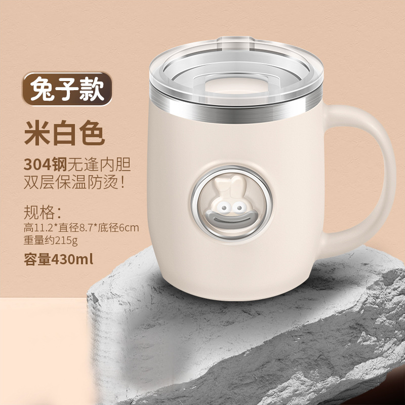 • 304 스틸 더블 레이어 머그 [래빗-오프화이트]