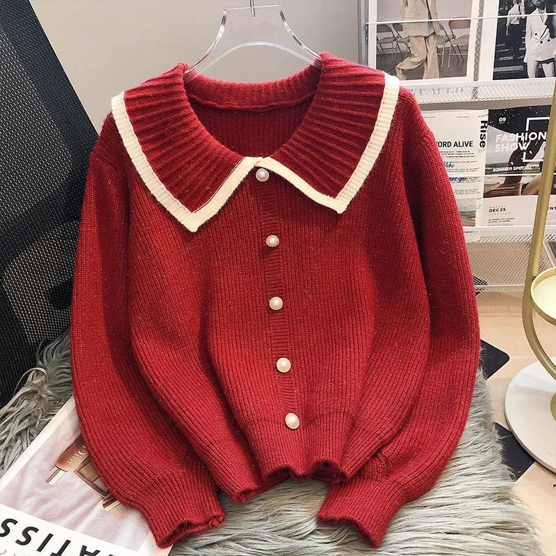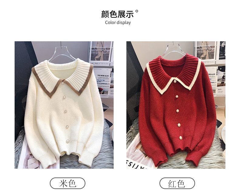 인형 칼라 니트 스웨터 카디건 여성의 가을과 겨울 2023 새로운 느슨한 이른 봄과 가을 젊은 스타일 샤넬 스타일 코트스토어 가기