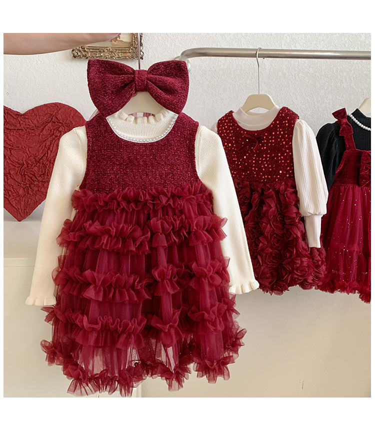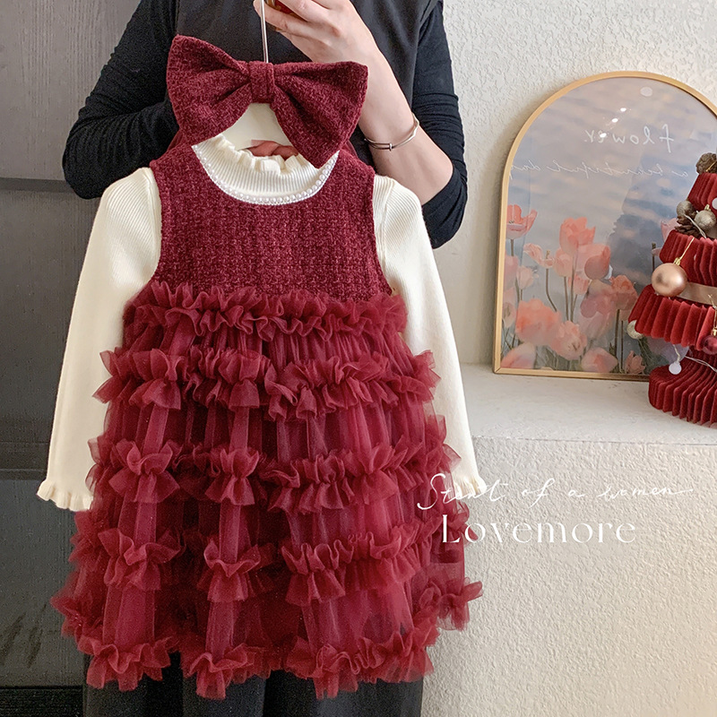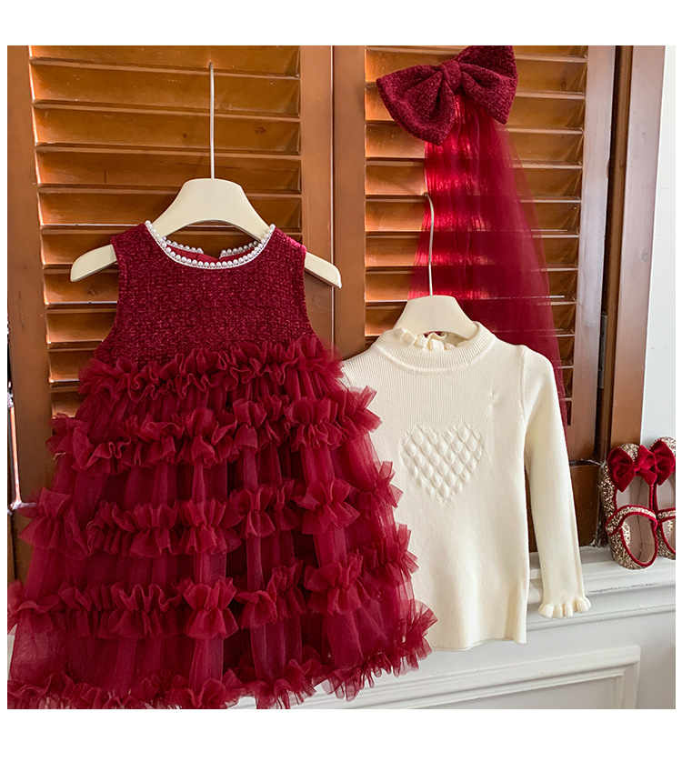 여아 드레스 2025 가을 신상 헤비 튜튜 케이크 드레스 다용도 민소매 조끼 드레스 니트 스웨터 세트