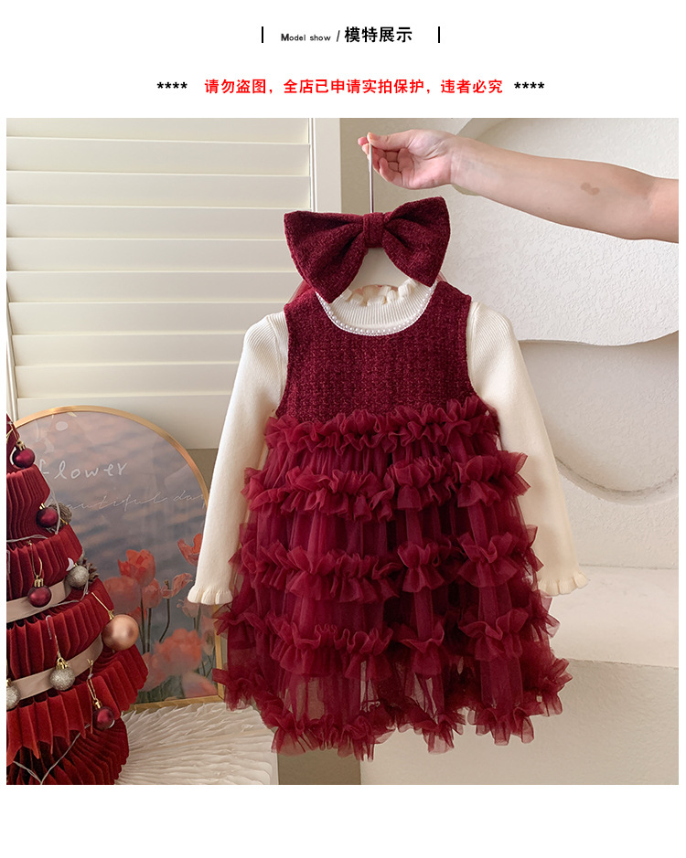 여아 드레스 2025 가을 신상 헤비 튜튜 케이크 드레스 다용도 민소매 조끼 드레스 니트 스웨터 세트스토어 가기