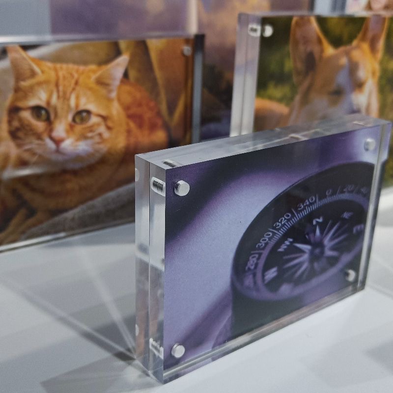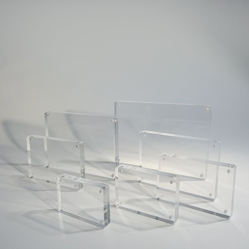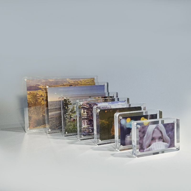 强磁相框多款尺寸 厚度。 薄款不能站立(3+3mm 5+5mm)只能斜靠 平放或贴墙。厚款可以站立(8+8mm 10+10mm)可以直接立在桌面上 ,支持定制可联系在线客服