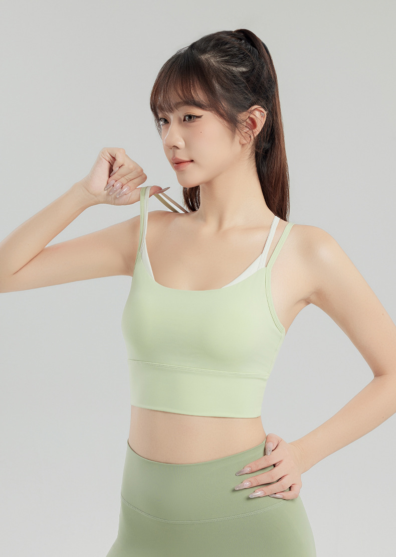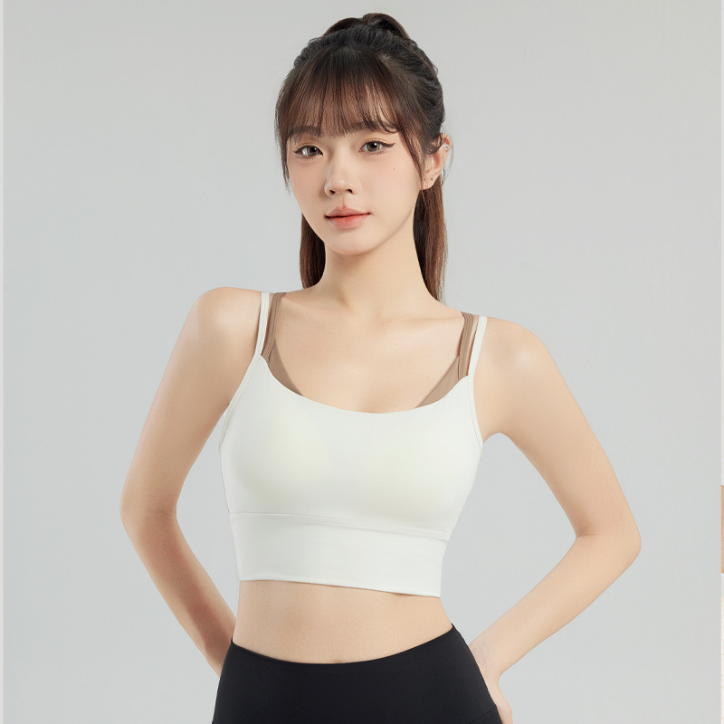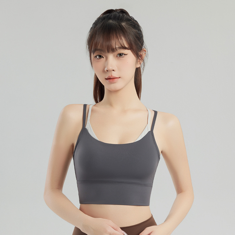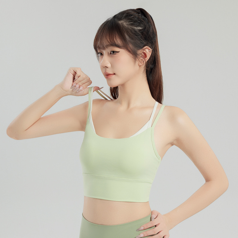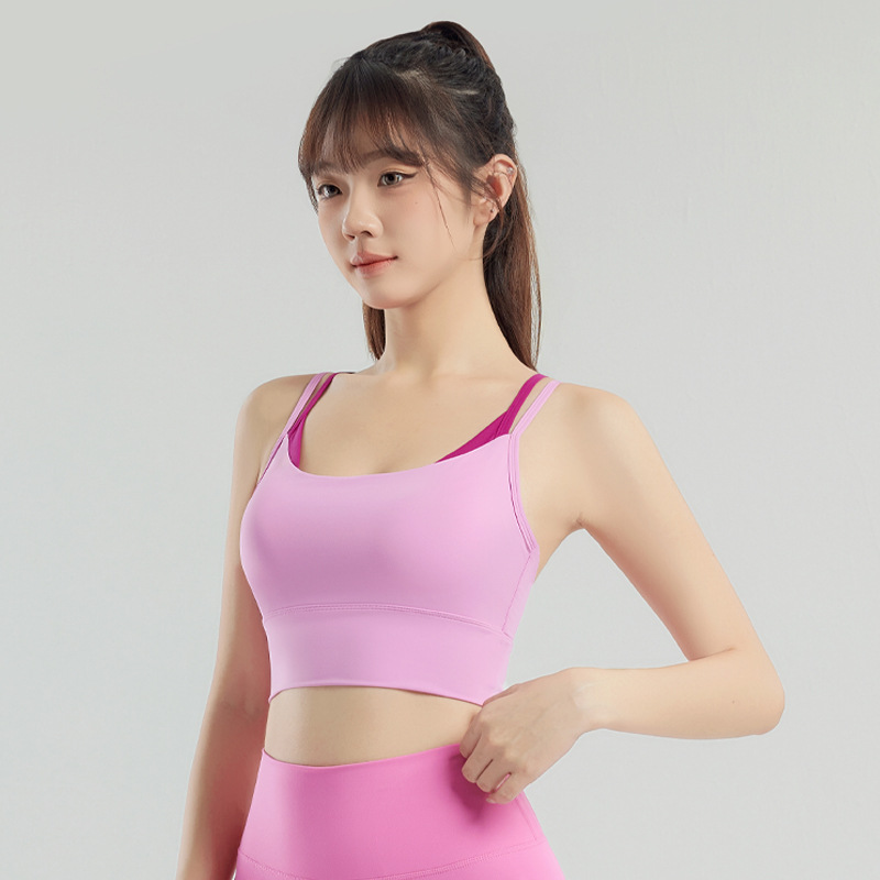 새로운 더블 숄더 스트랩 요가 조끼 여자 요가 착용 상단 가슴 패드 피트니스 브라 룰루 동일 스타일 스포츠 속옷스토어 가기