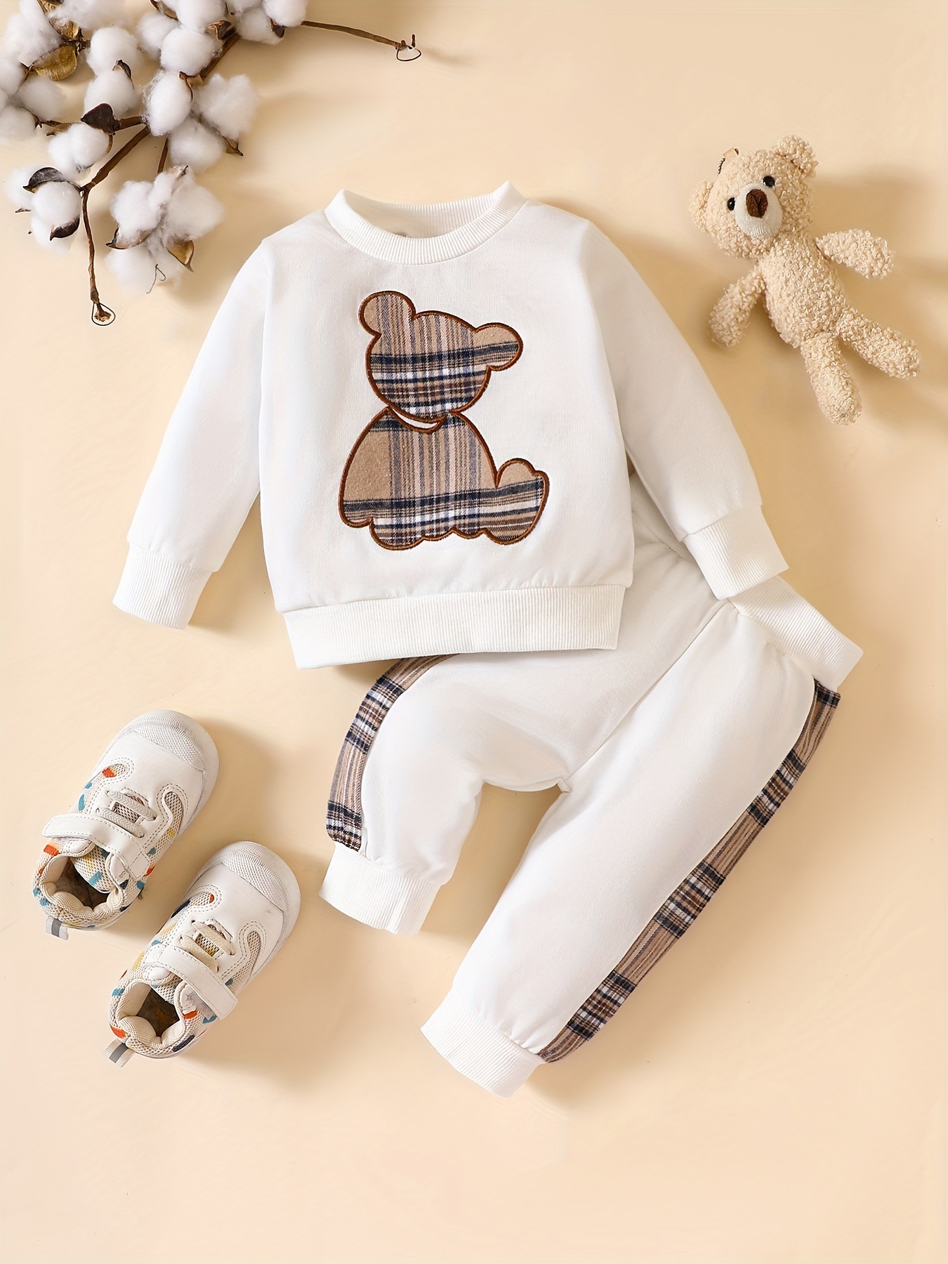 국경 간 INS 아마존 2024 새로운 폭발 아기 수표 곰 자수 조끼 세트스토어 가기