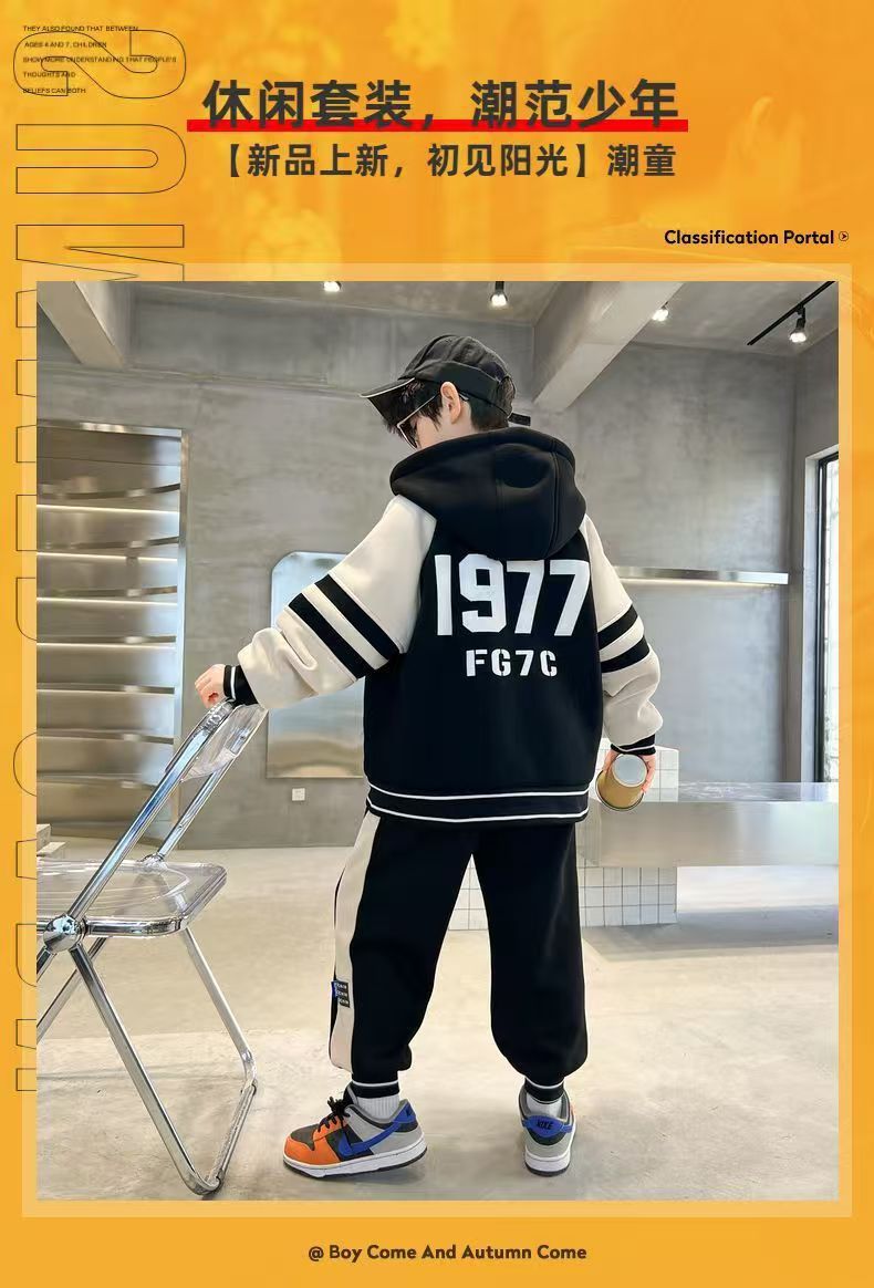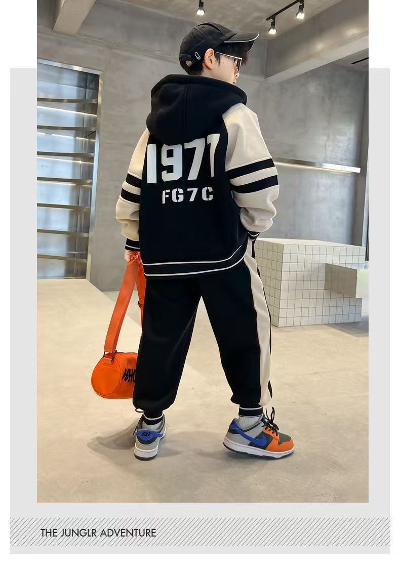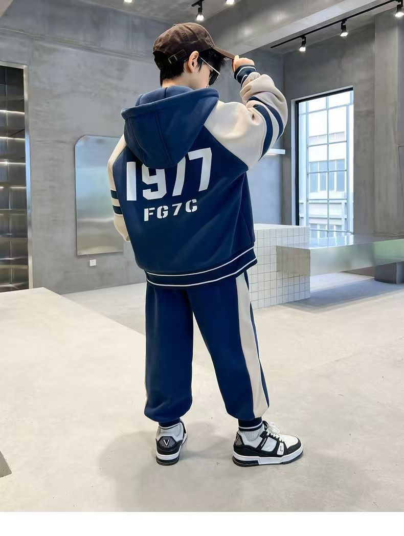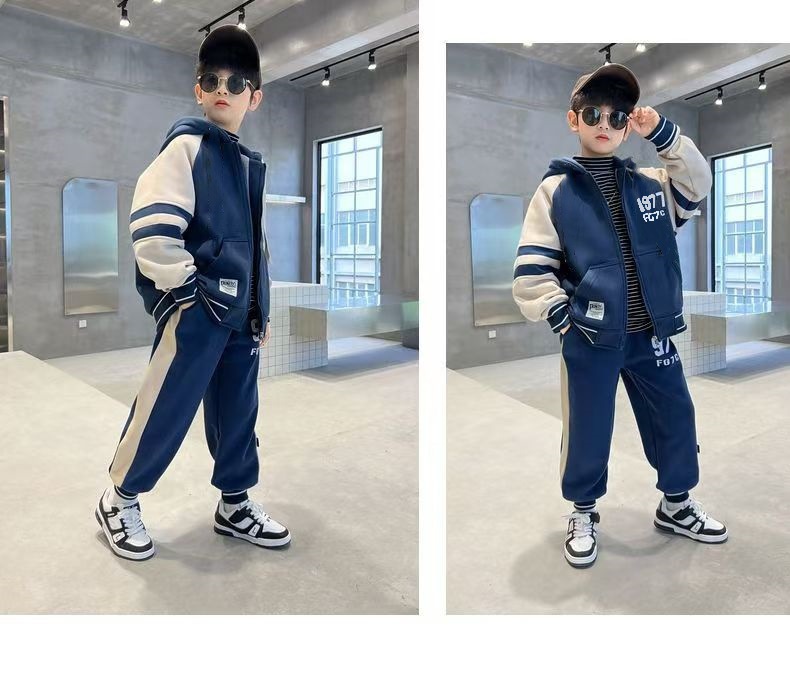 가을과 겨울 새 어린이 양면 양털 두꺼운 후드 지퍼 후디 세트 중소 소년 캐주얼 투피스 세트스토어 가기