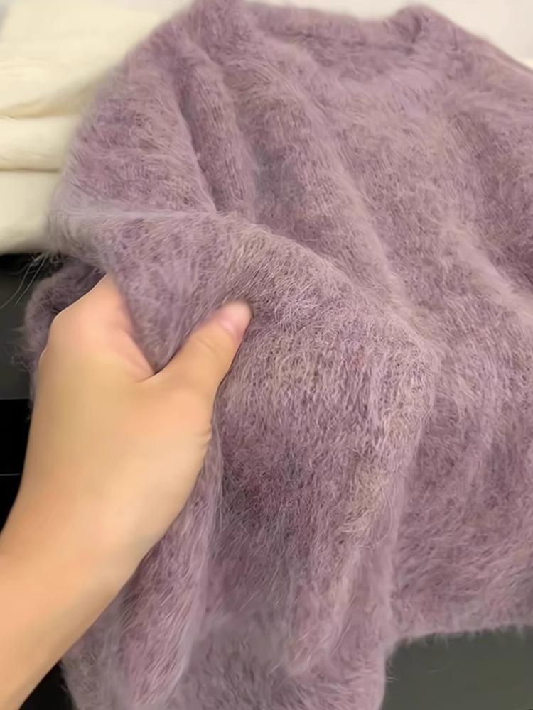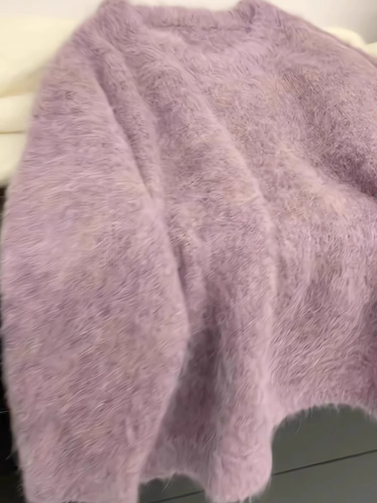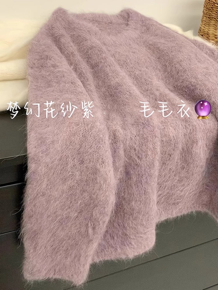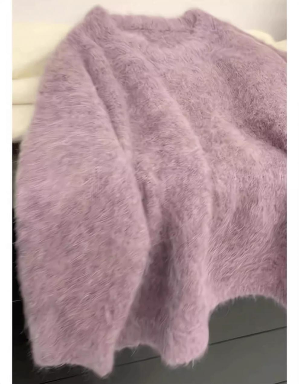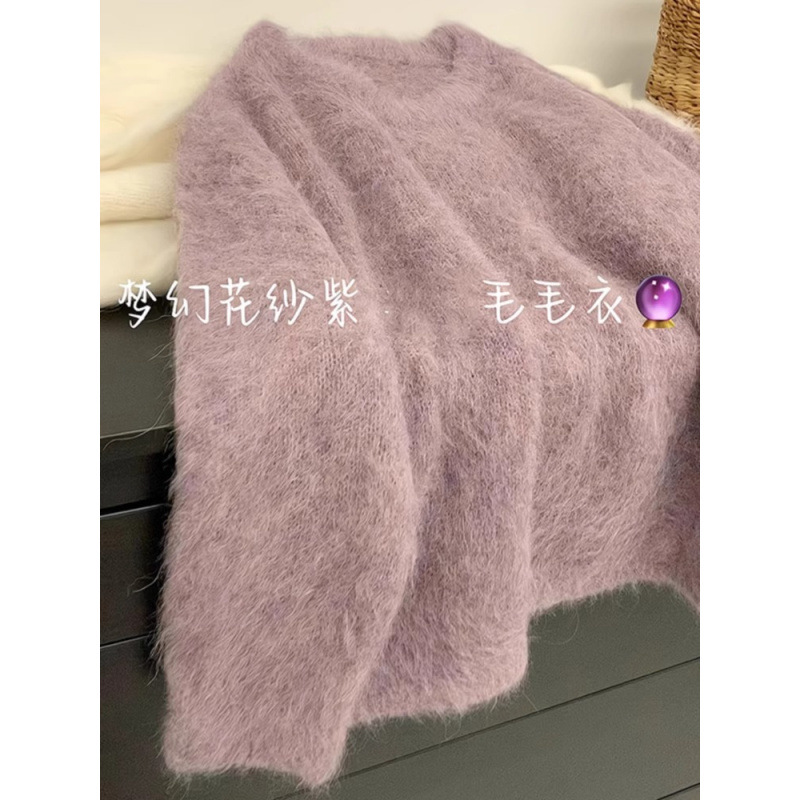 퍼플 밍크 벨벳 스웨터 여성의 가을과 겨울 두꺼운 아우터 소프트 왁스 게으른 스타일 니트 스웨터 인기 올해 아름다운 탑