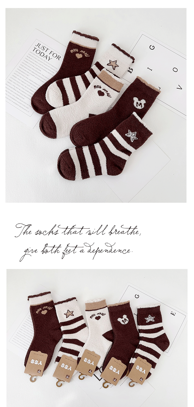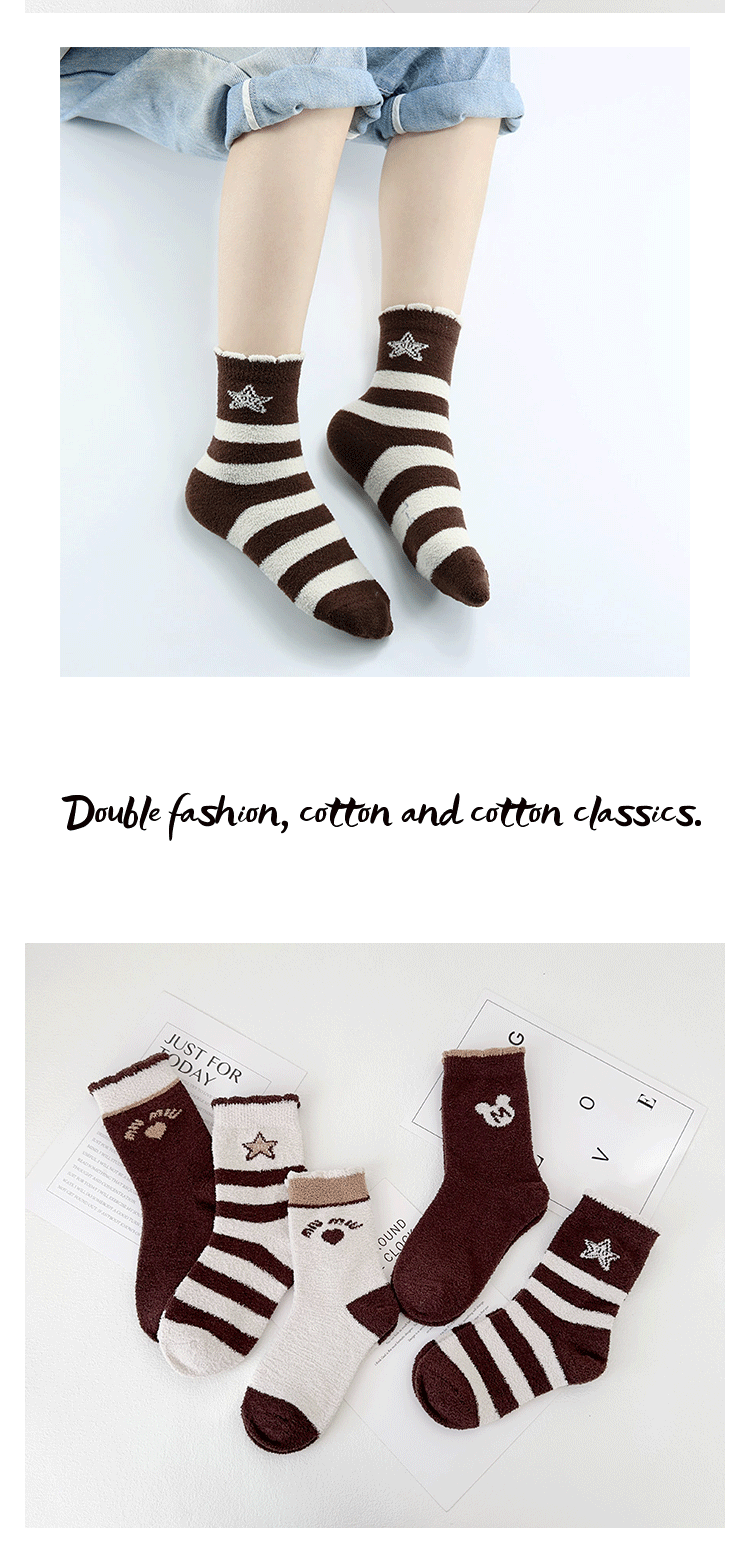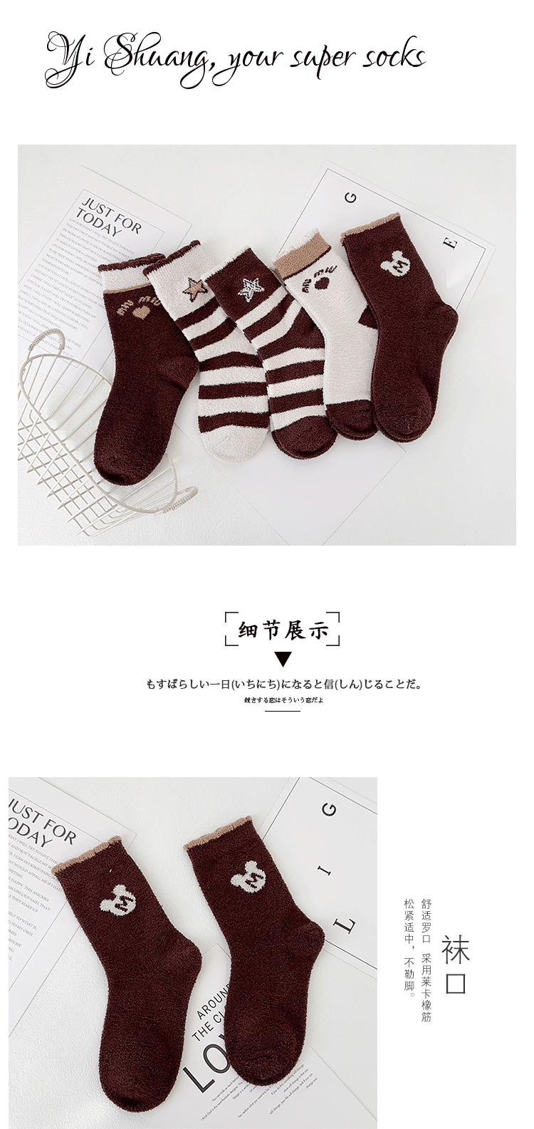 Yi Pair 어린이 양말 겨울 새 한국 스타일 미키 양말 양면 벨벳 두꺼운 따뜻한 소녀 캐시미어 양말