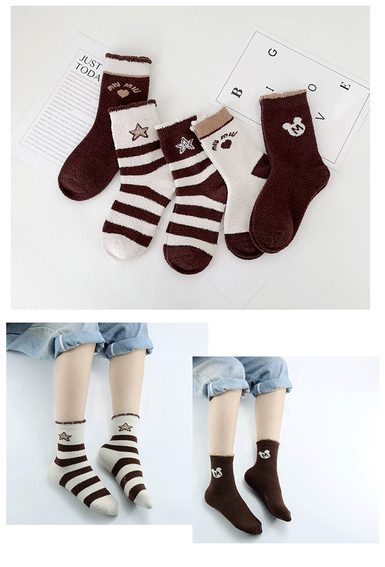 Yi Pair 어린이 양말 겨울 새 한국 스타일 미키 양말 양면 벨벳 두꺼운 따뜻한 소녀 캐시미어 양말스토어 가기