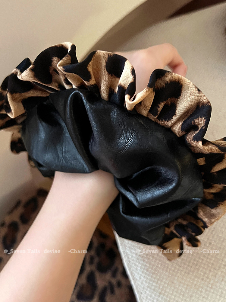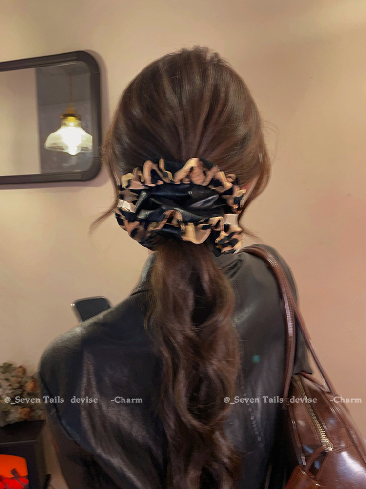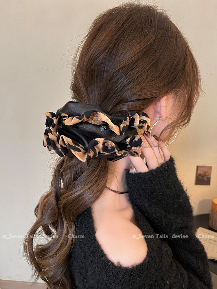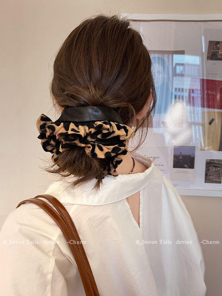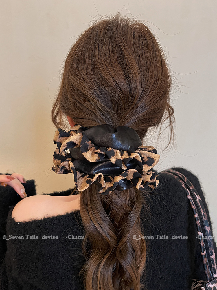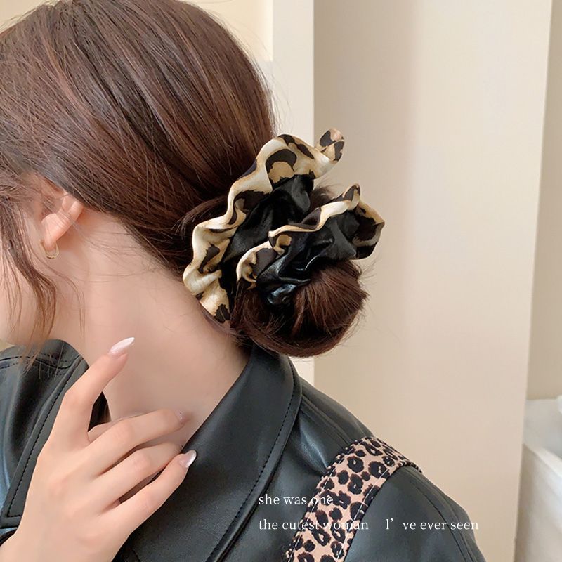 빈티지 콘트라스트 컬러 레오파드 대형 Intestine 헤어 밴드 여성의 2024 새로운 헤어 로프 높은 탄성 내구성 고무 밴드 헤어 로프스토어 가기