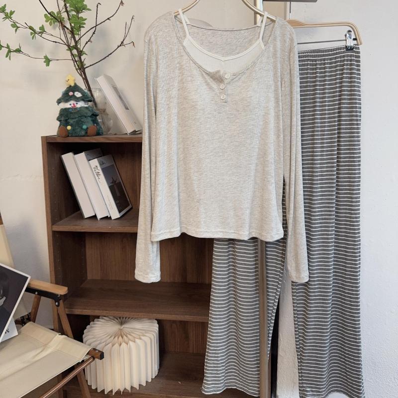 모달 파자마 여성의 봄 가을 겨울 가짜 두 조각 긴 소매 가슴 패드 의상 캐주얼 홈 의류 투피스 세트