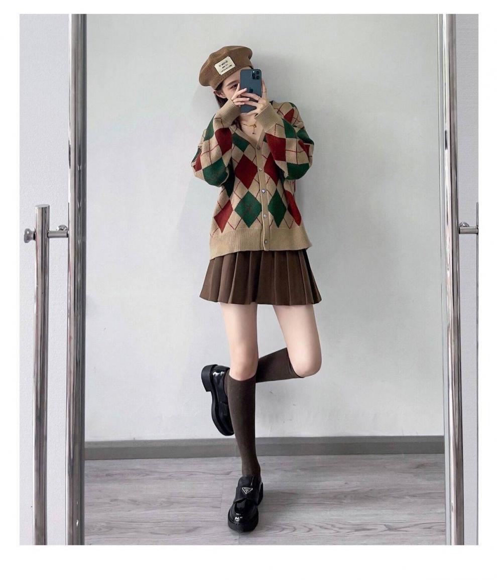 회색 가을과 겨울 양모 주름 치마 여성 치마 짧은 치마 대학 스타일 높은 허리 슬림 다크 브라운 스커트 A 라인 스커트스토어 가기
