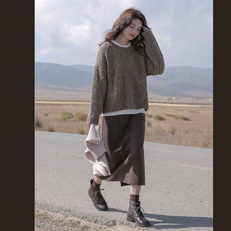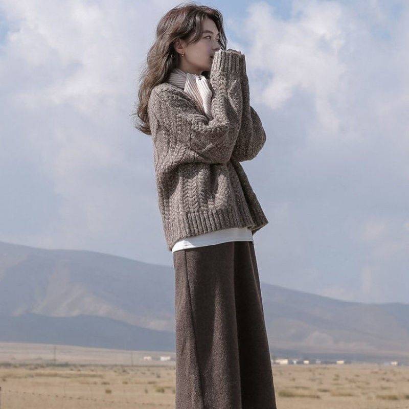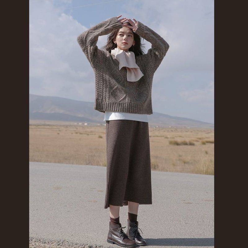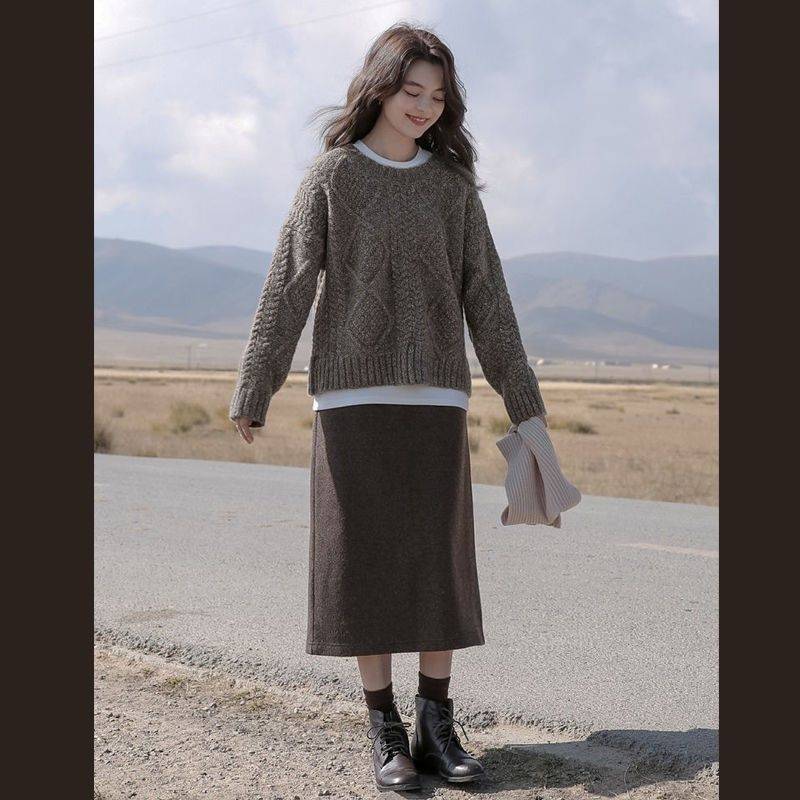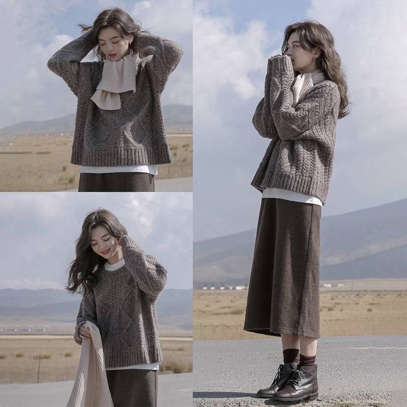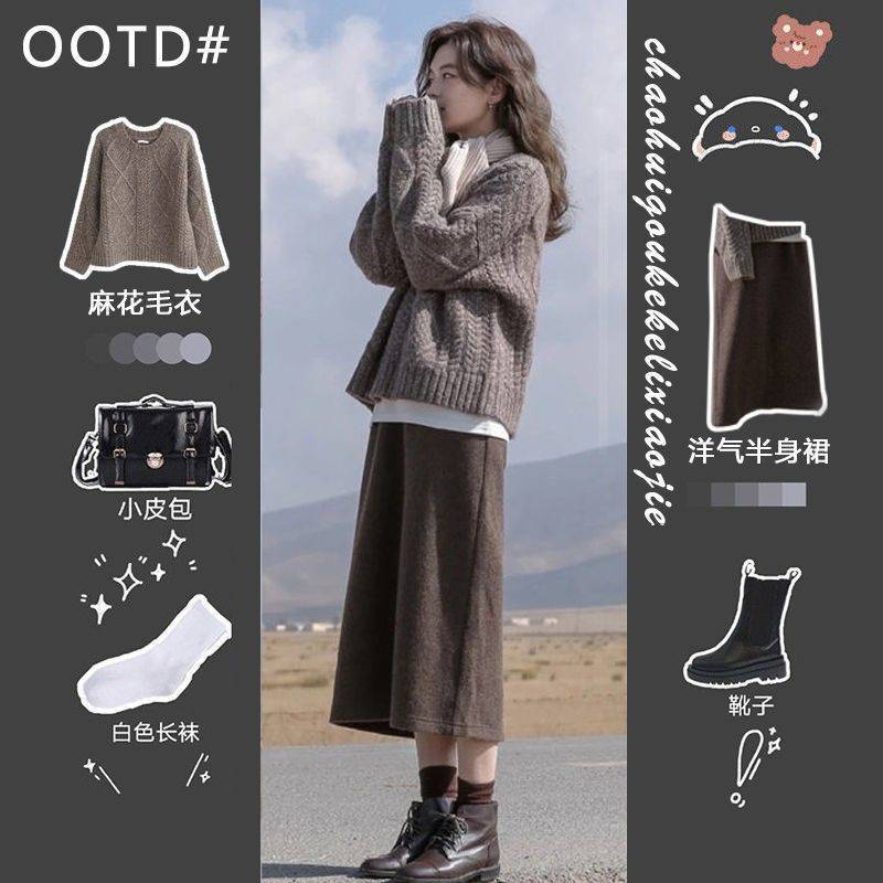 겨울 세트 여자 2024 새로운 한국 스타일 느슨한 스웨터 여성의 우아한 슬림 니트 스커트 투피스 세트스토어 가기