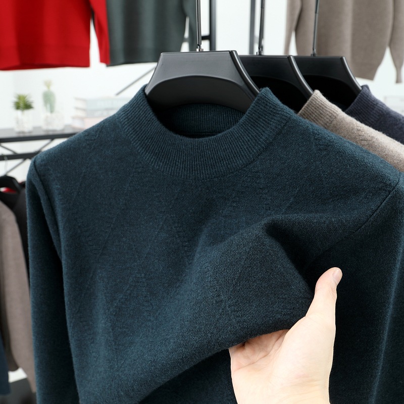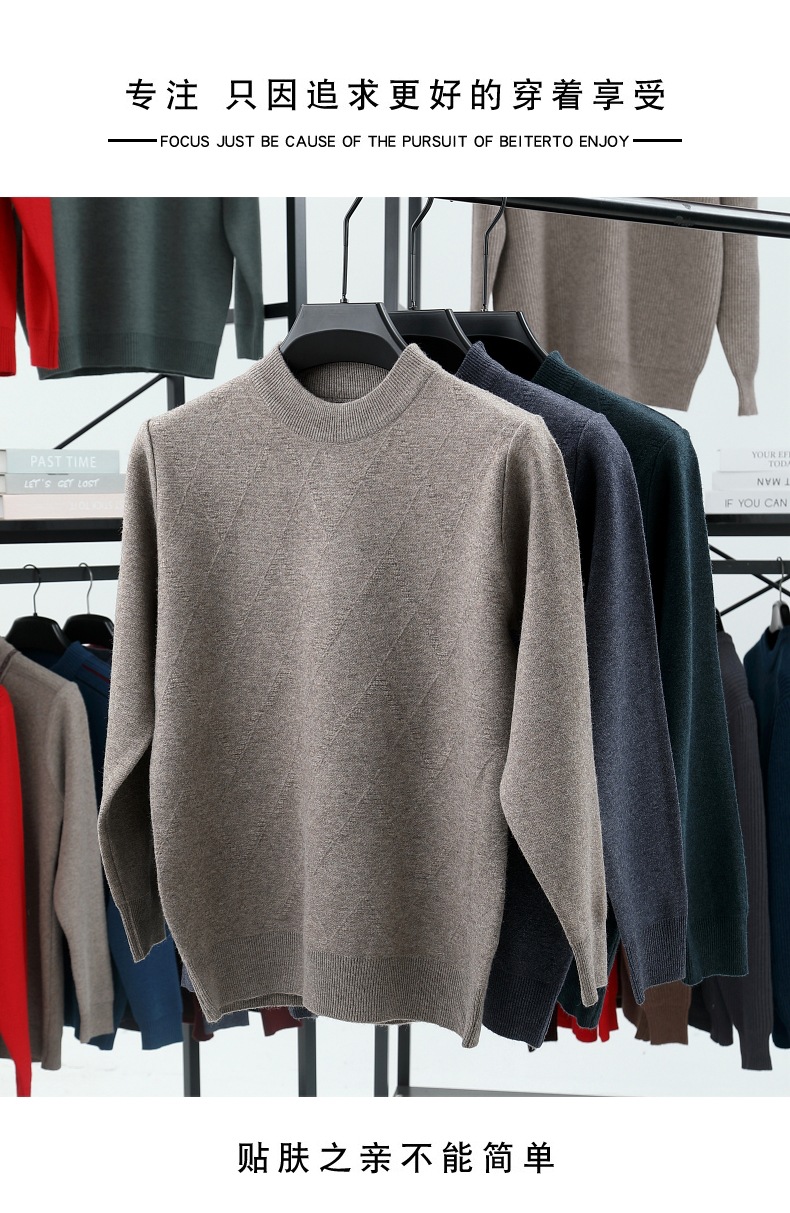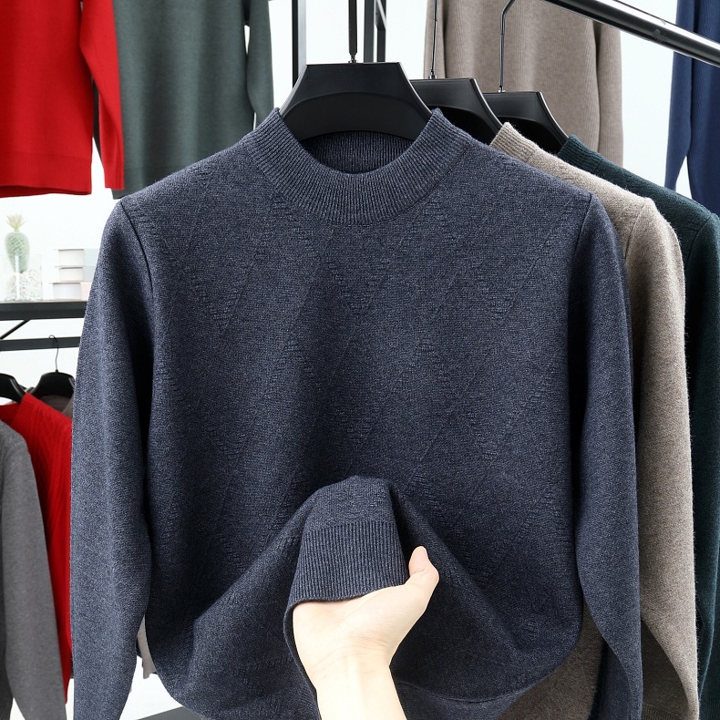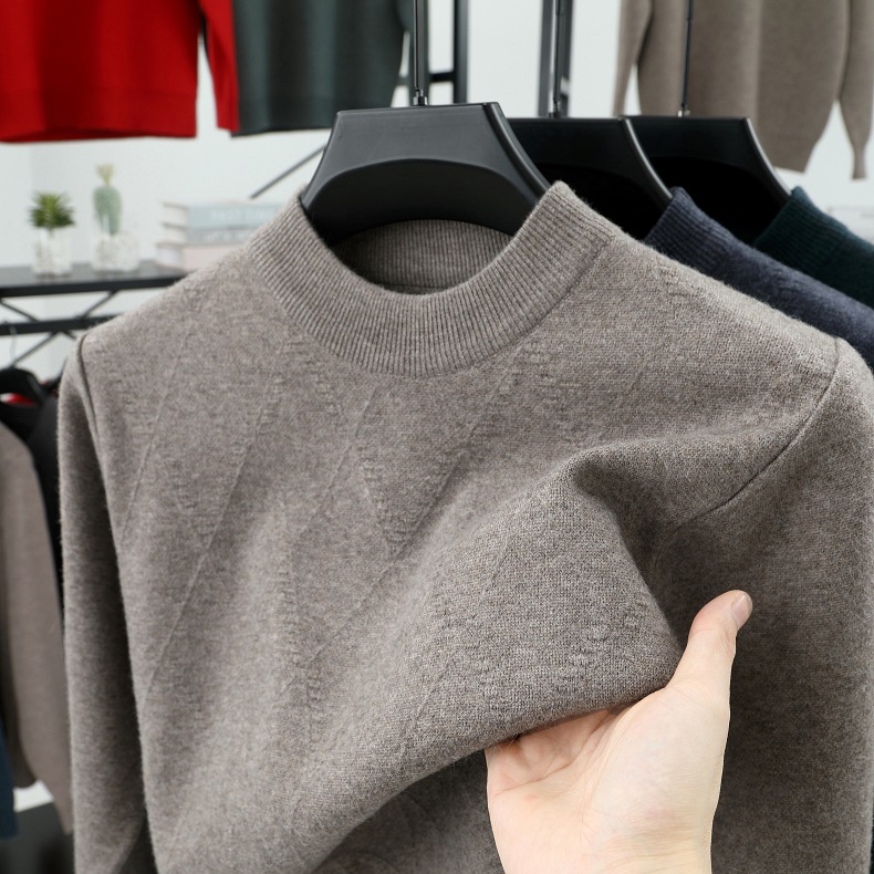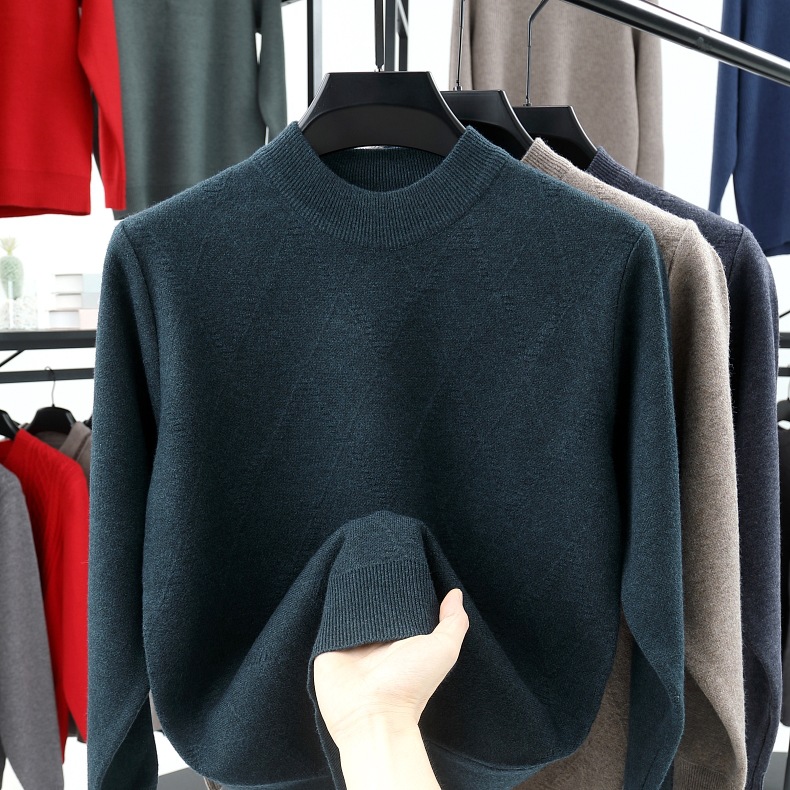 정품 퓨어 울 남자 스웨터 겨울 중년 남성 크루 넥 스웨터 니트웨어 따뜻한 솔리드 컬러 울 베이스스토어 가기