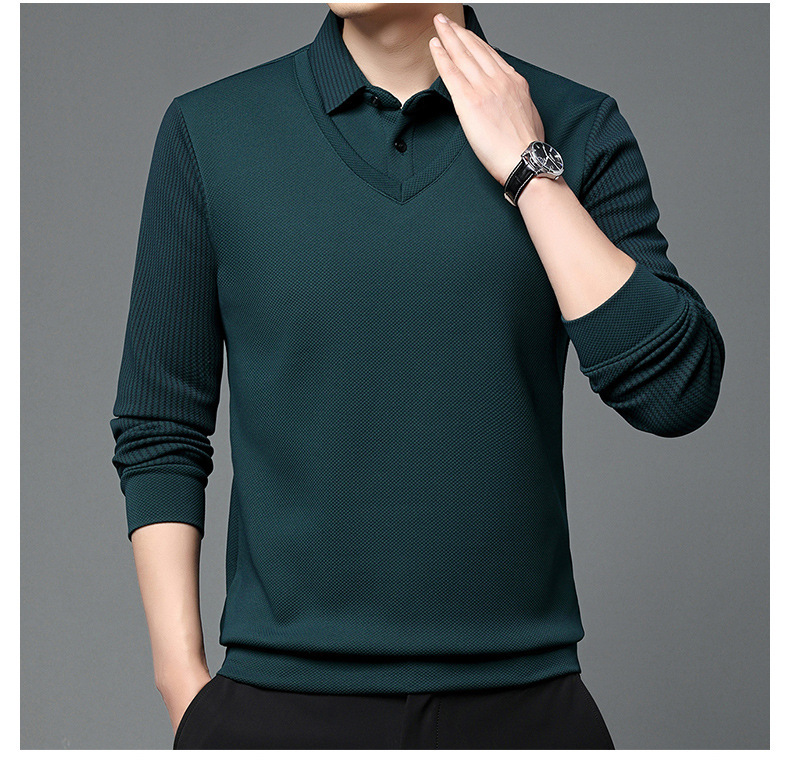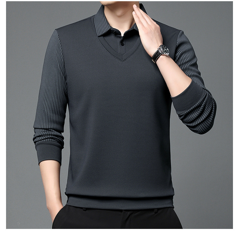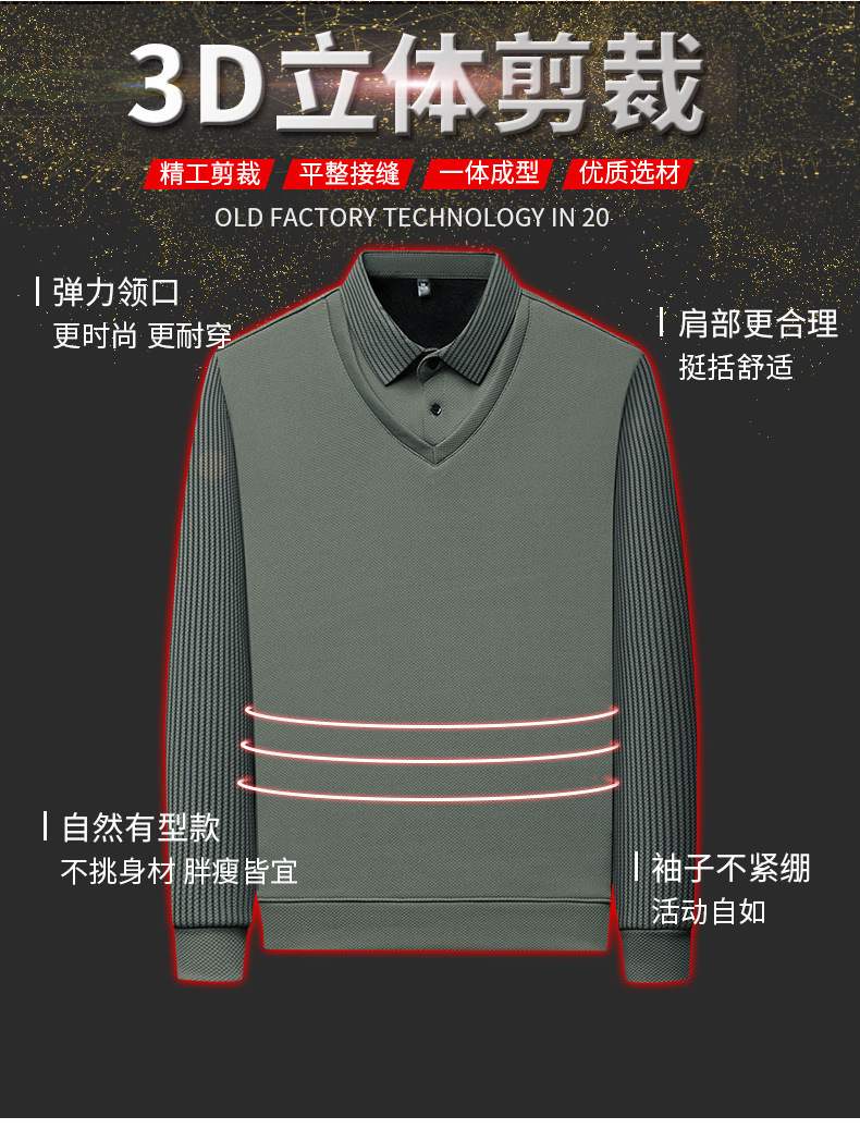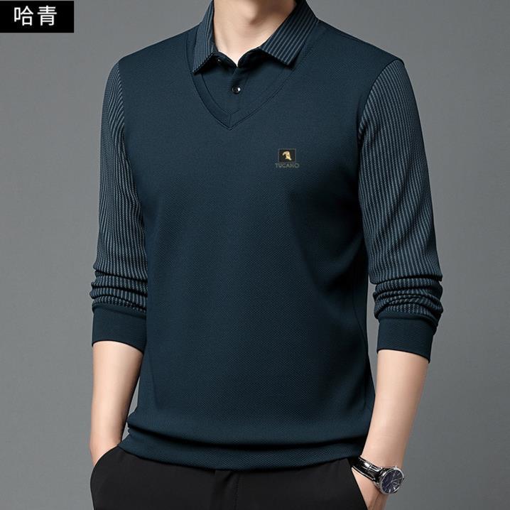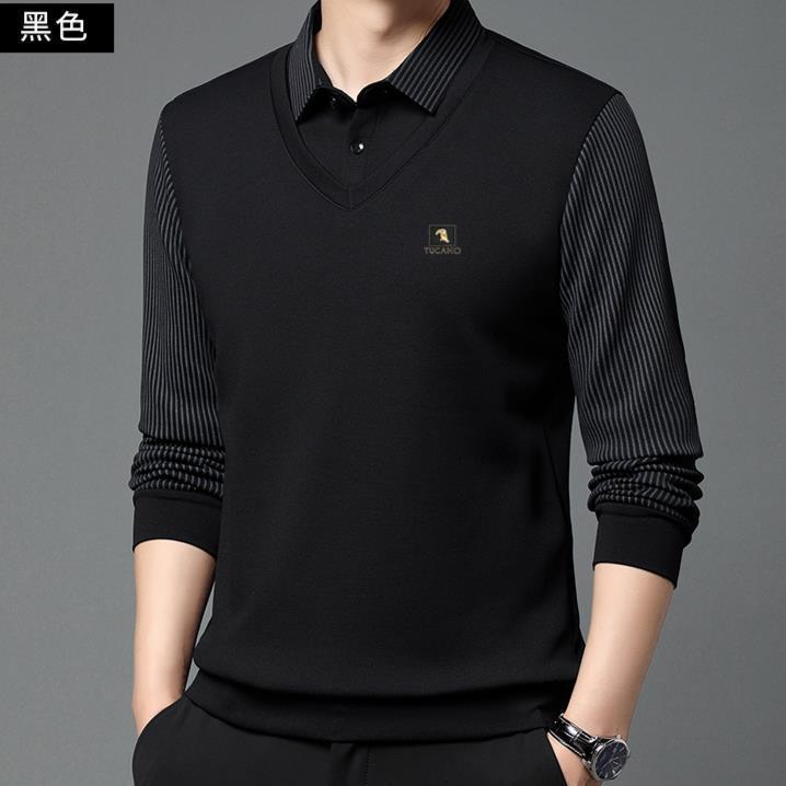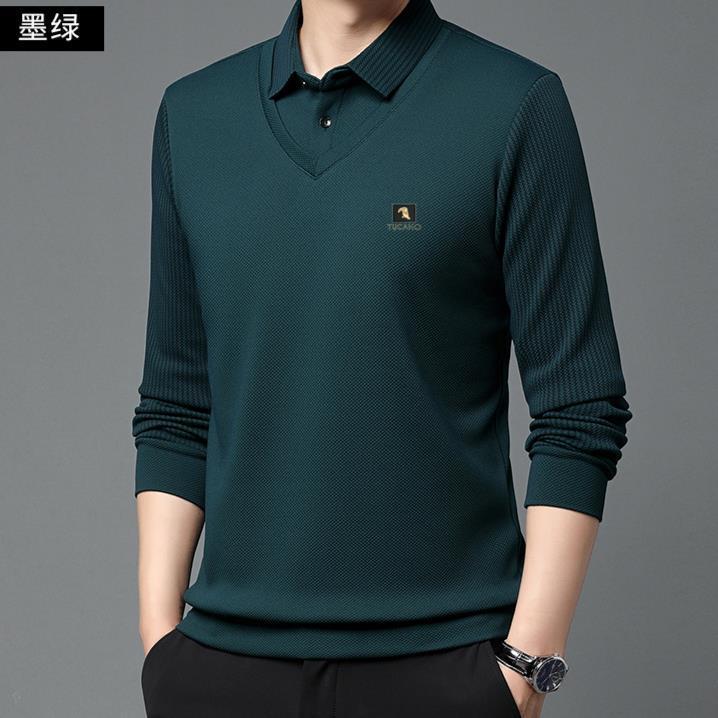 국경 간 대외 무역 역 아웃 바운드 남성 기모 가짜 투피스 티셔츠 비즈니스 캐주얼 원피스 플리스 풀오버 베이스 셔츠