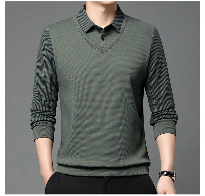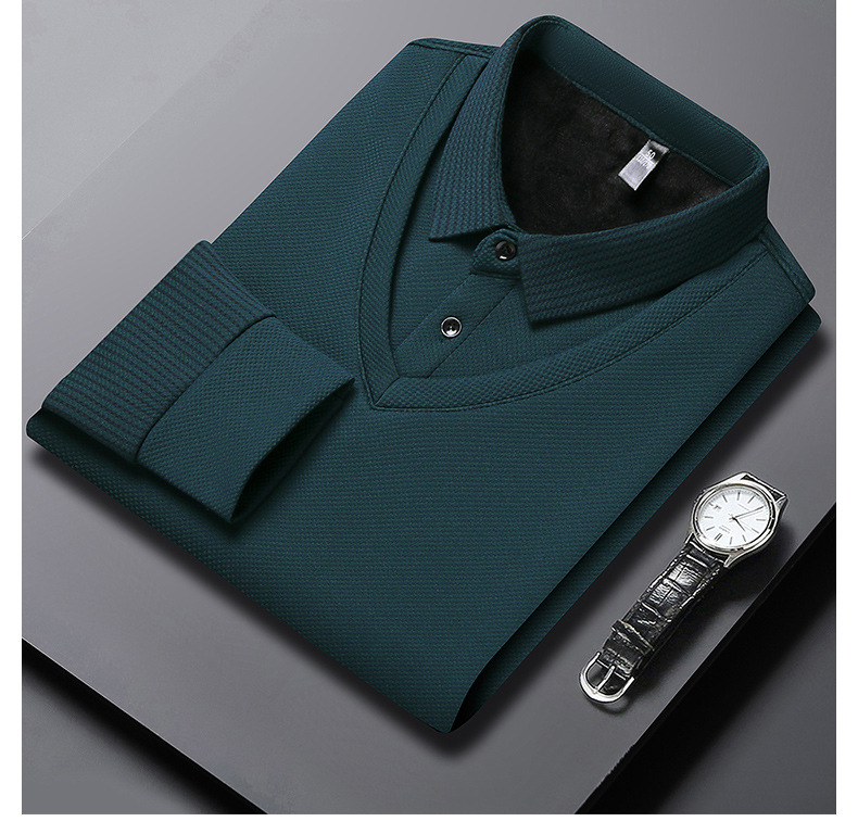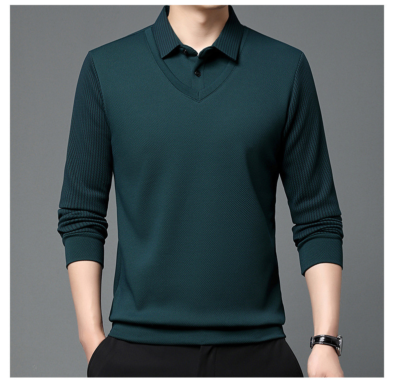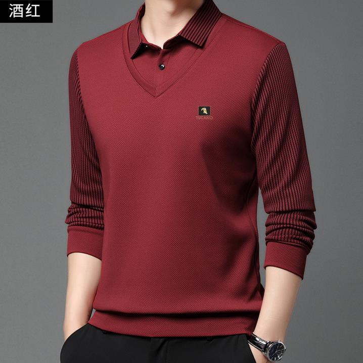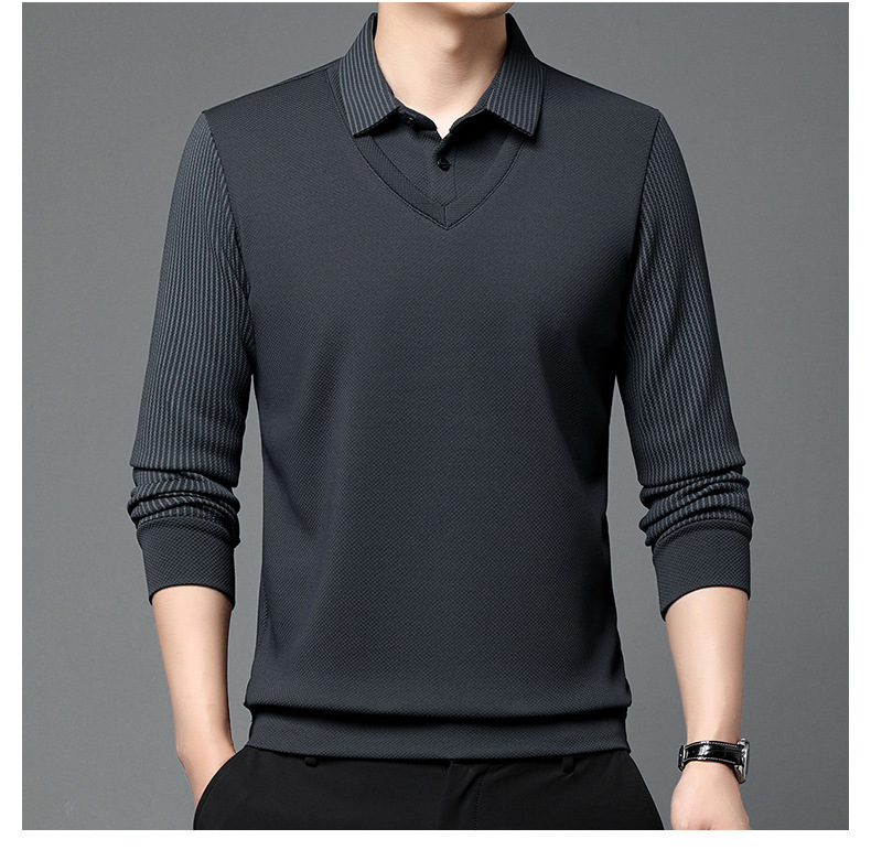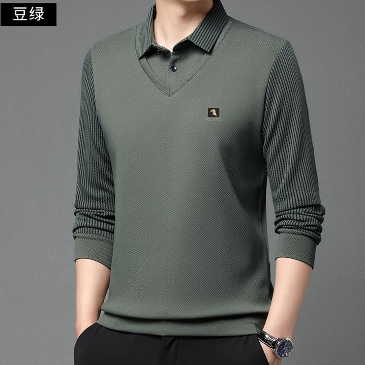 국경 간 대외 무역 역 아웃 바운드 남성 기모 가짜 투피스 티셔츠 비즈니스 캐주얼 원피스 플리스 풀오버 베이스 셔츠