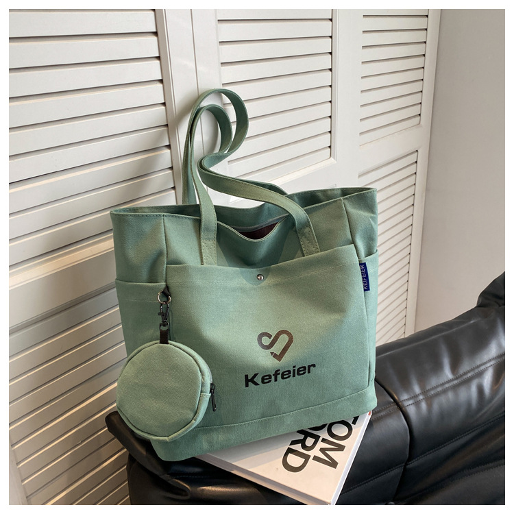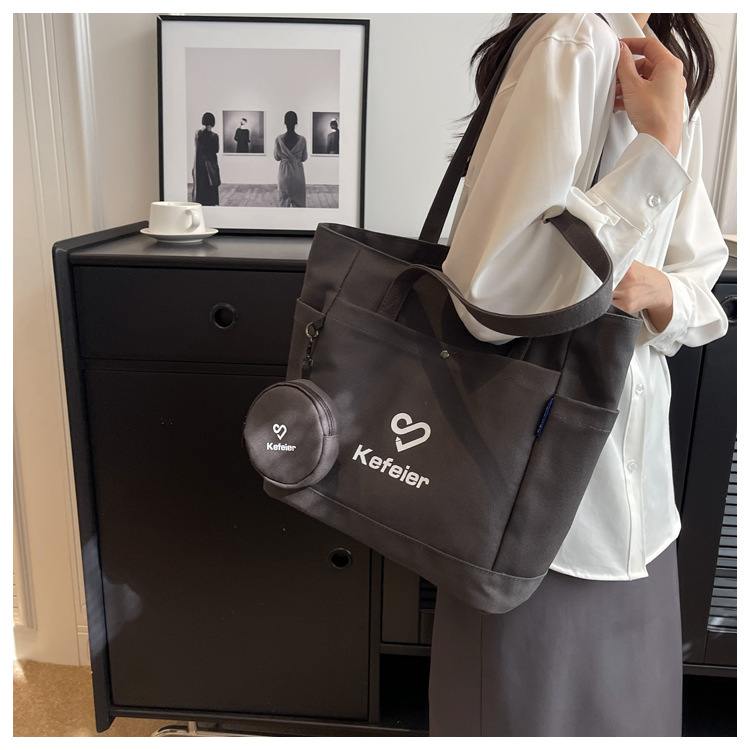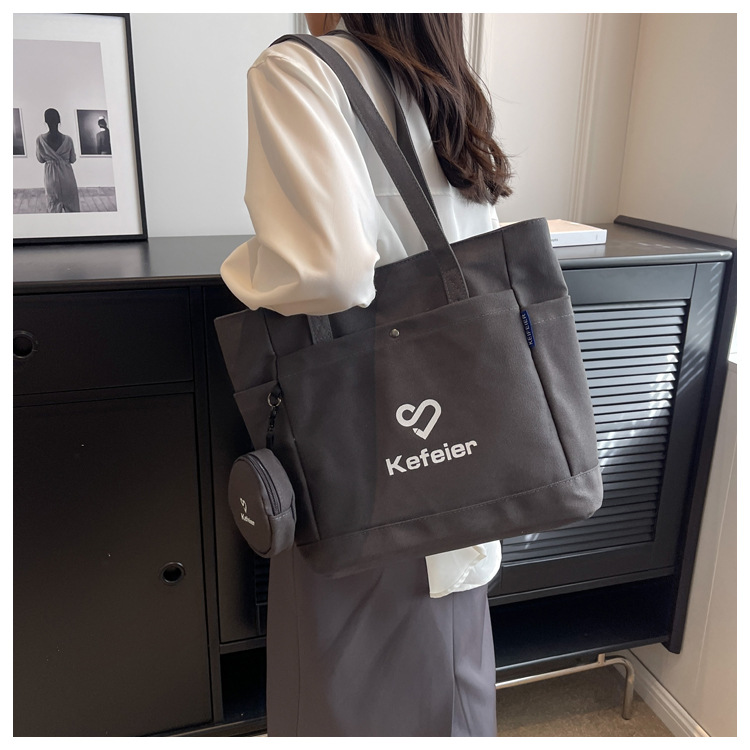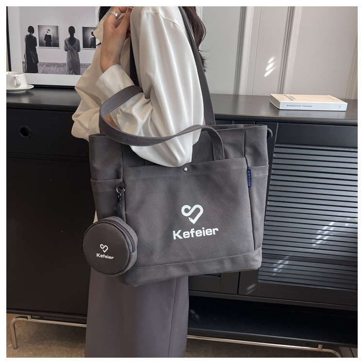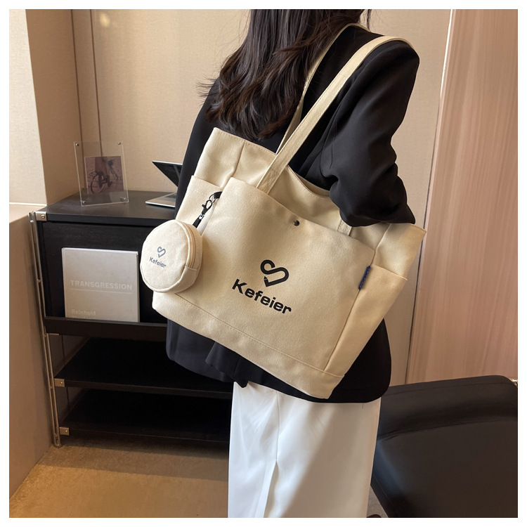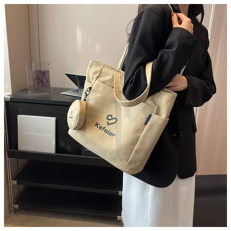 대용량 캔버스 가방 여성의 2024 새로운 가을 및 겨울 학생 어깨 가방 클래스 모든 경기 통근 토트 백