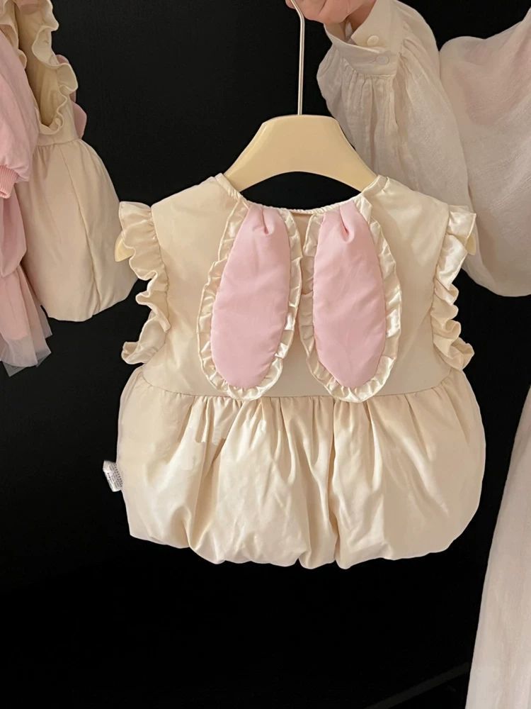 가을과 겨울 여성 어린이 의류 면 패딩 재킷 조끼 아기 서양식 어린이 성격 유행 한국 스타일 만화 토끼 귀 지팡이스토어 가기