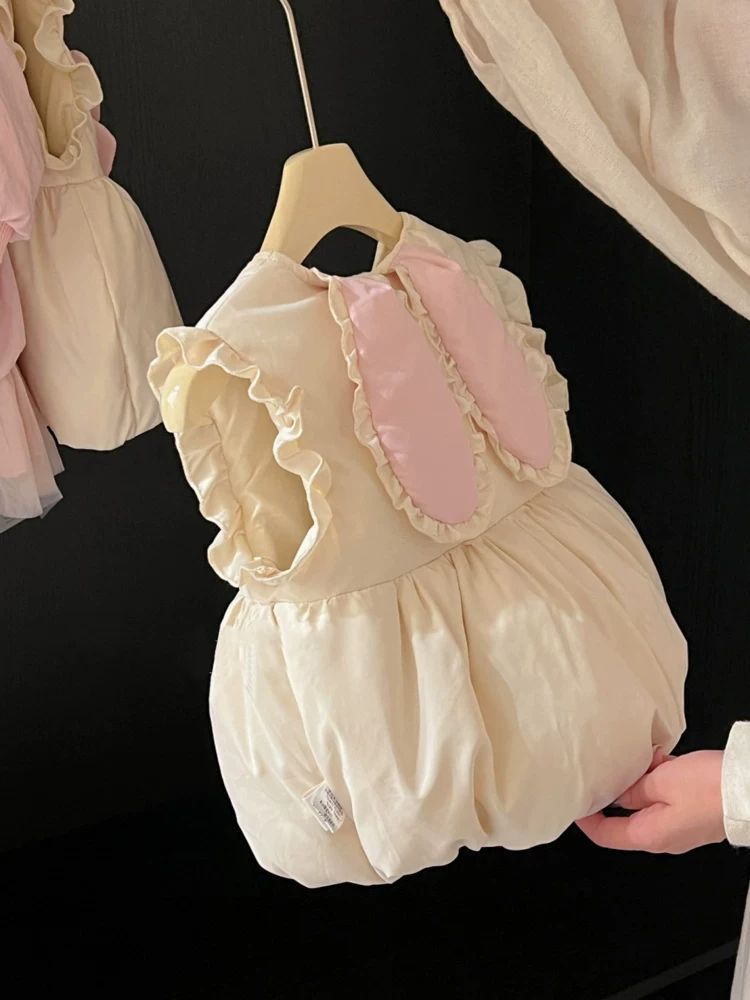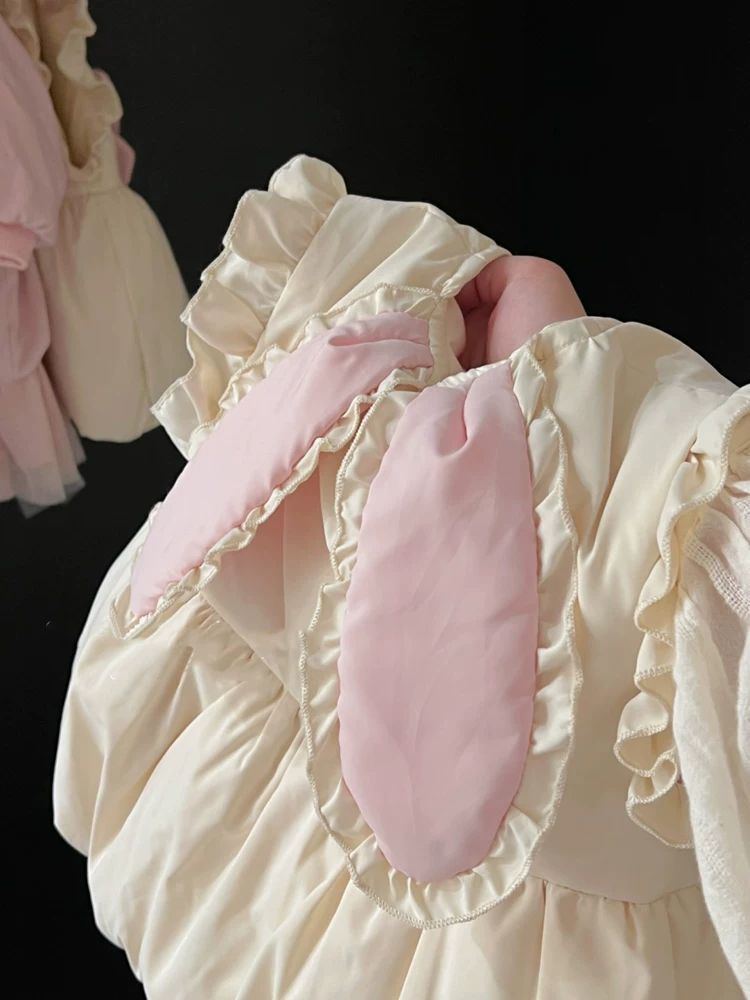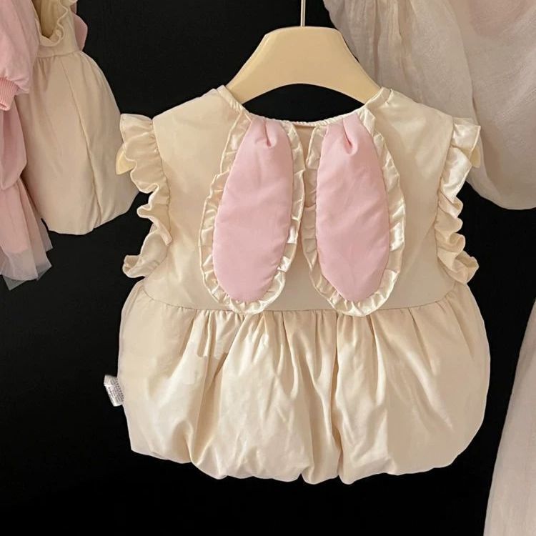 가을과 겨울 여성 어린이 의류 면 패딩 재킷 조끼 아기 서양식 어린이 성격 유행 한국 스타일 만화 토끼 귀 지팡이