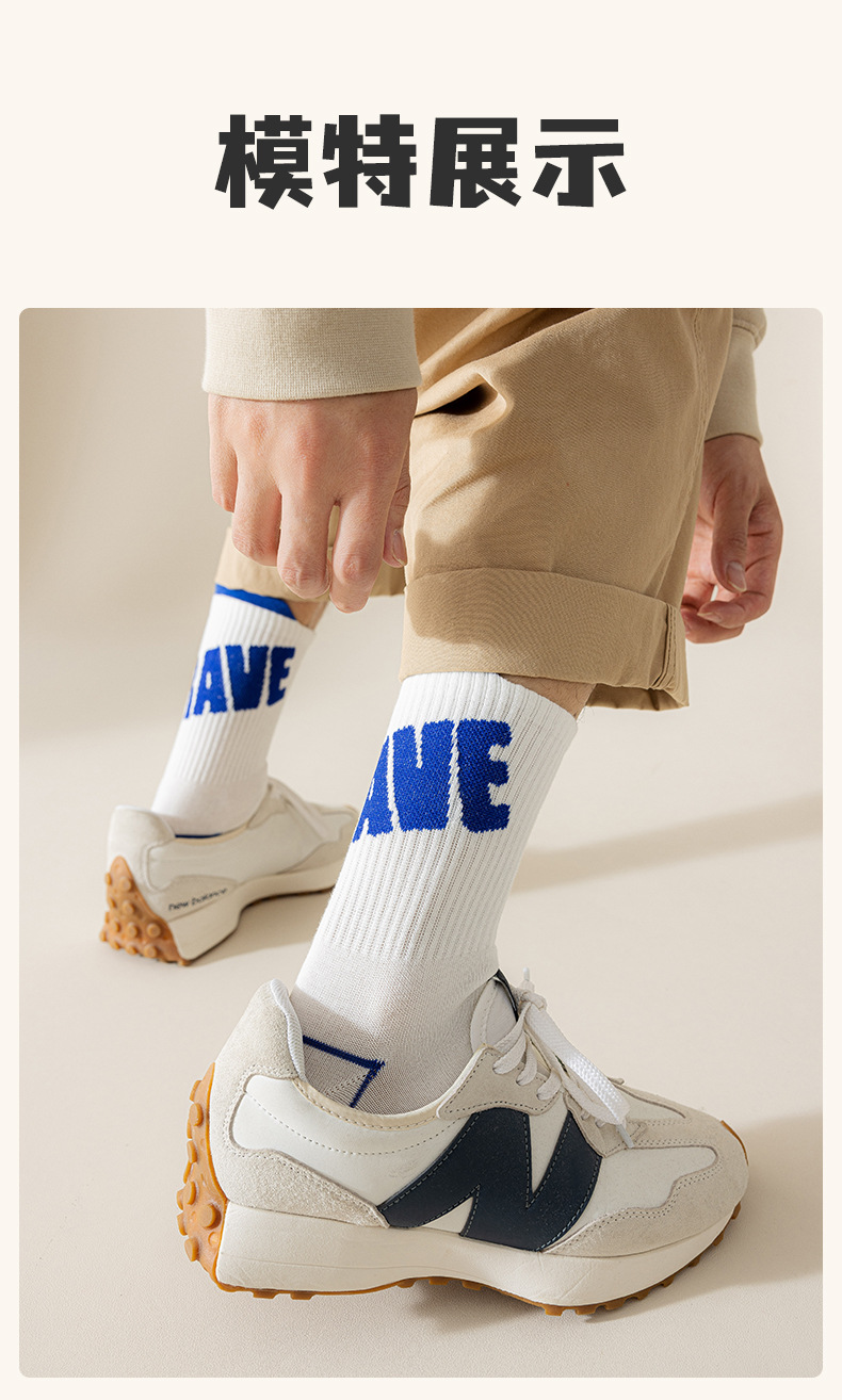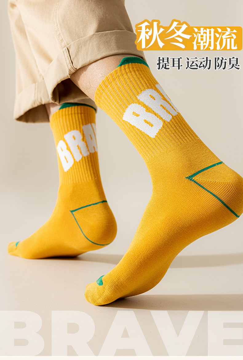 가을과 겨울 면화 양말 남성 편지 귀 트렌드 스포츠 2024 새로운 세대의 도매 Zhuji 공장