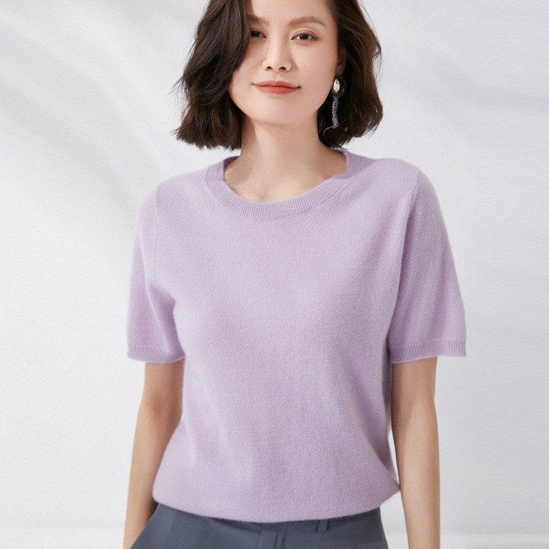 봄과 가을 새로운 캐시미어 반소매 여성 반소매 라운드 넥 풀오버 얇은 양모 니트 베이스 레이어 셔츠 여성용 반소매 스웨터스토어 가기