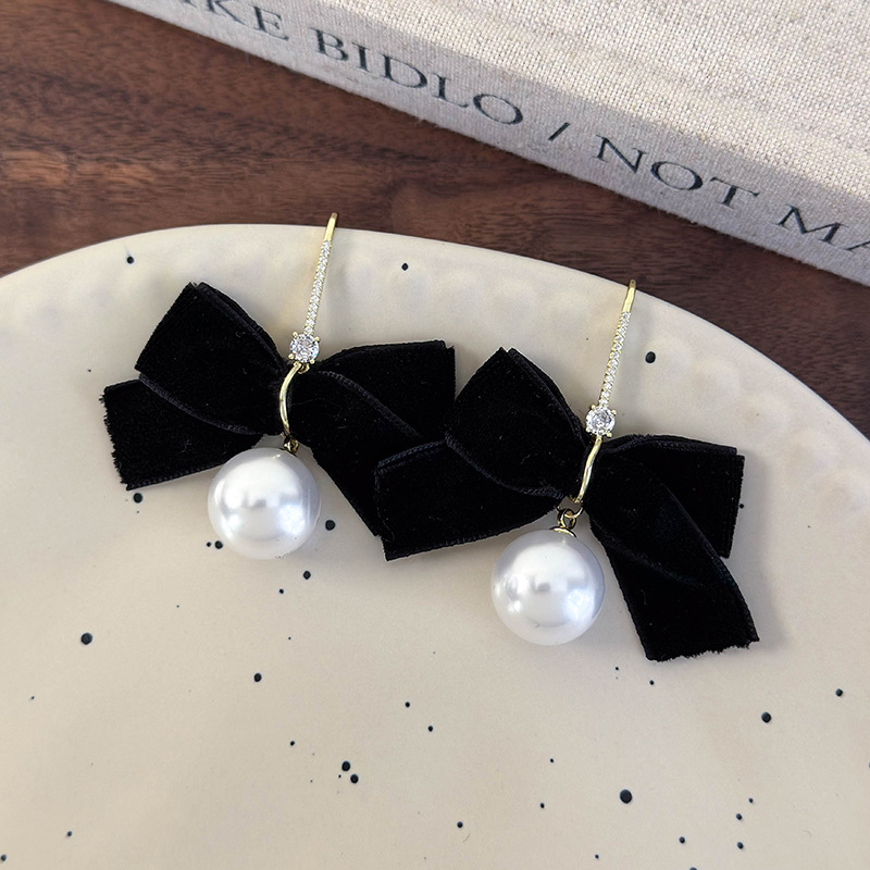 달콤한 프렌치 헵번 스타일 블랙 활 진주 귀걸이 가을과 겨울 빈티지 벨벳 틈새 디자인 센스 귀걸이