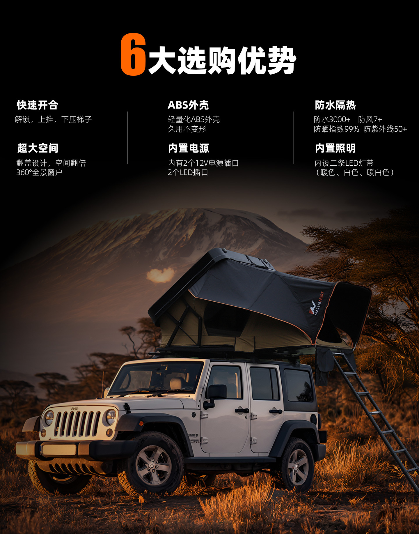 지붕 텐트 자동차 텐트 빠른 오프닝 캠핑 캠핑 태양 방지 따뜻한 접이식 세단 SVU 오프로드