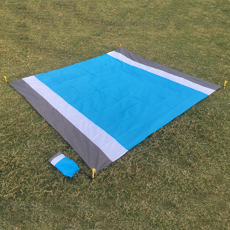 야외 캠핑 방수 편리한 접이식 휴대용 피크닉 매트 수분 방지 매트 폴리 에스테르 체크 포켓 비치 매트