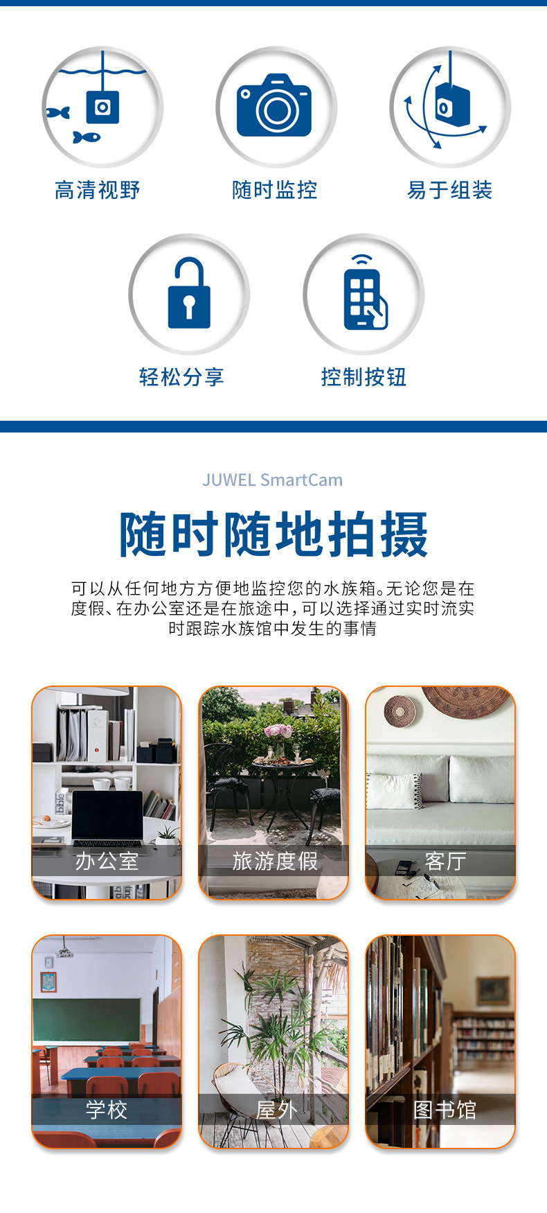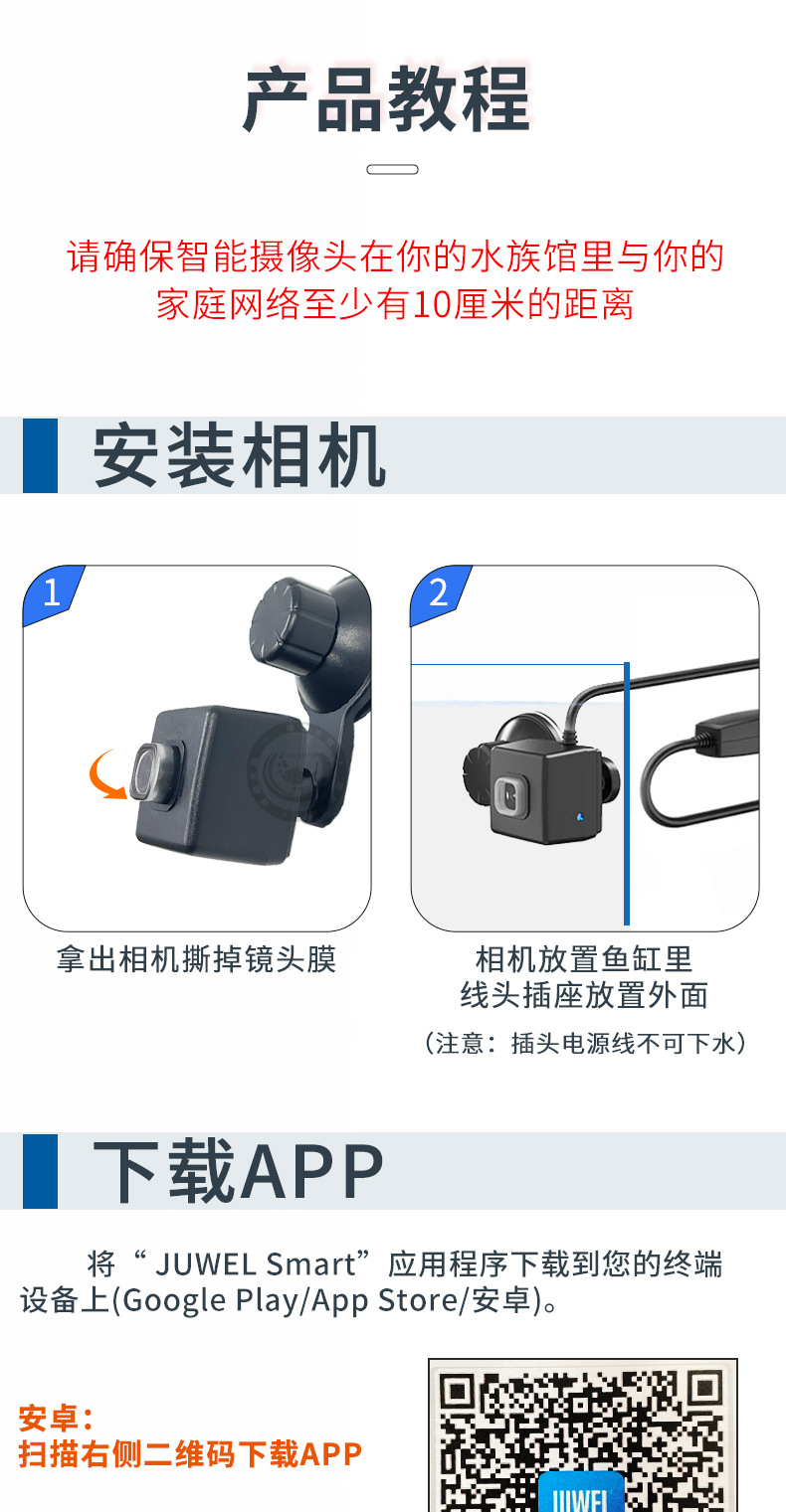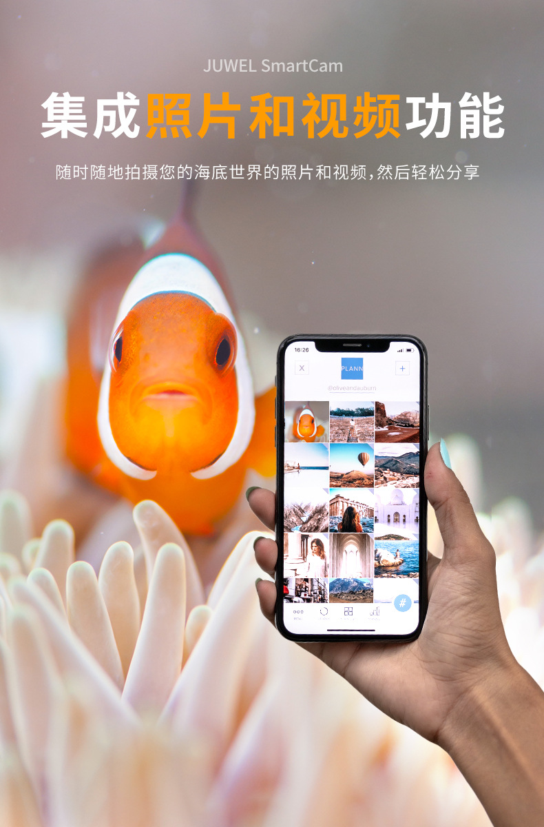 독일 JUWEL SmartCam 블랙 다이아몬드 물고기 탱크 수중 카메라 휴대 전화 원격 제어 스마트 감시 카메라스토어 가기