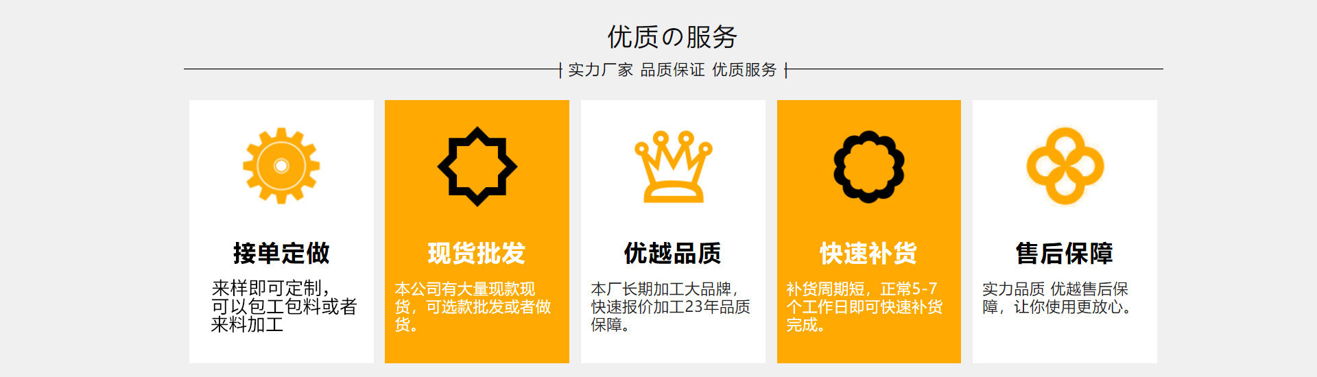 答:厂家直销、品种齐全、库存充足、创新实力强、价格管控、图文保护、极速发货、活动扶持。