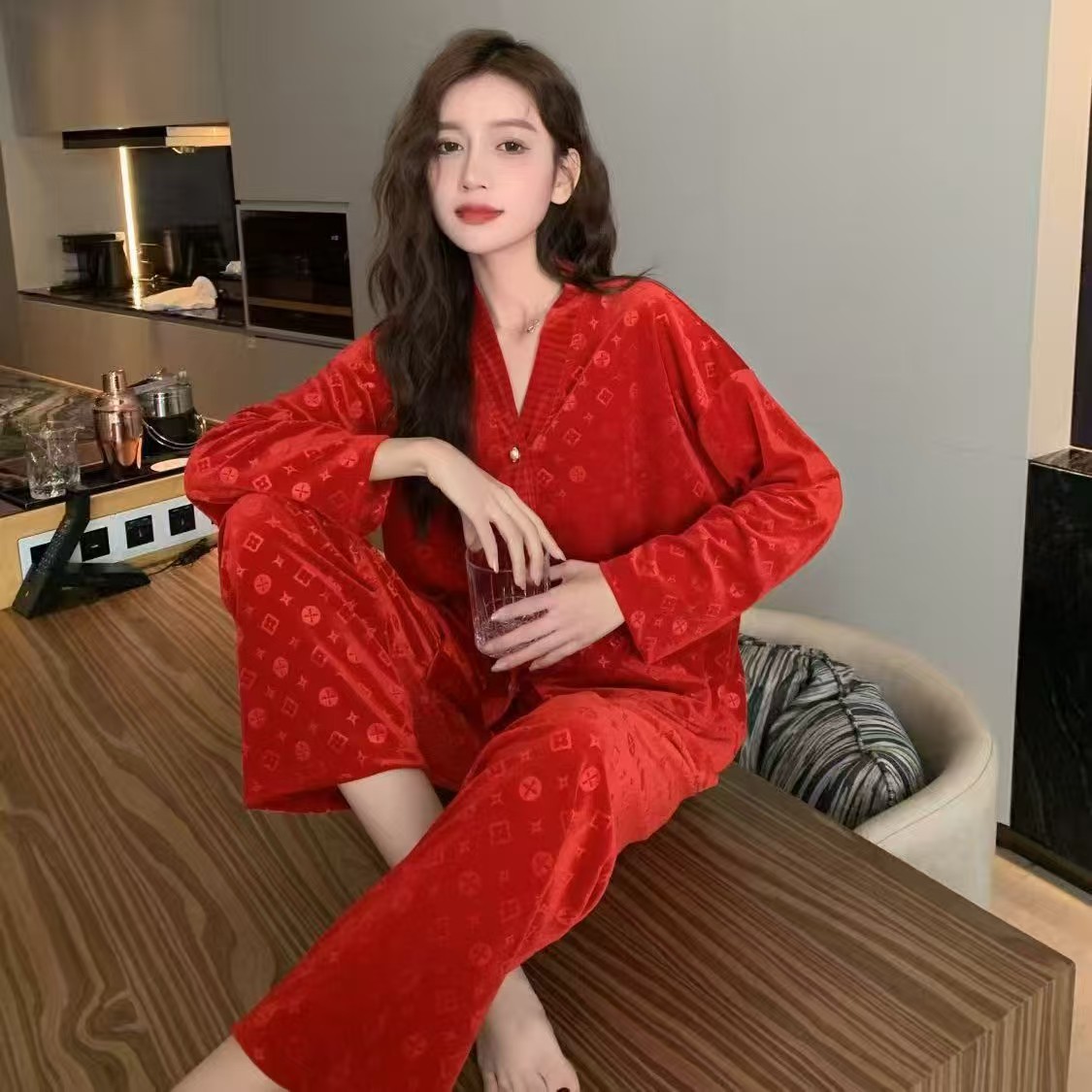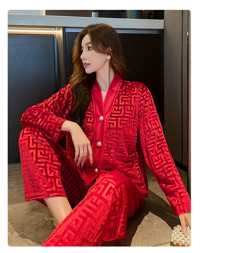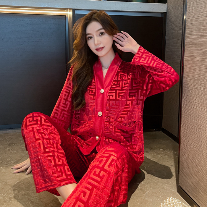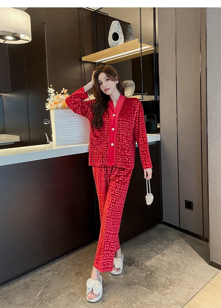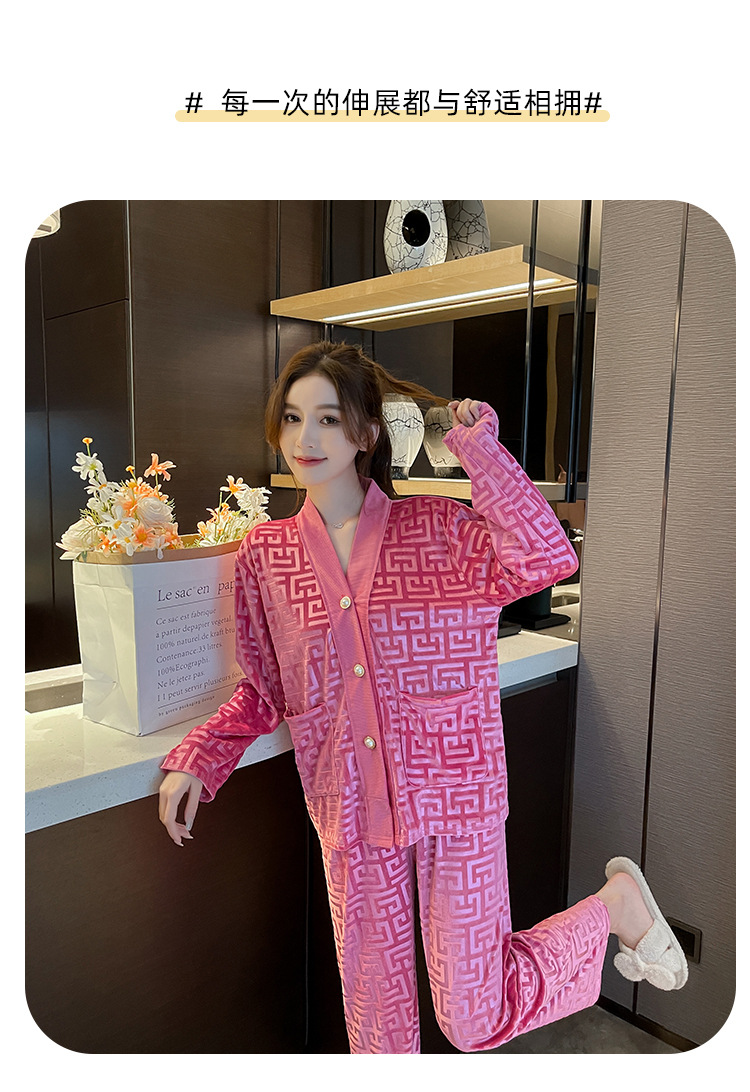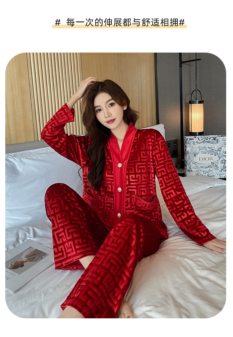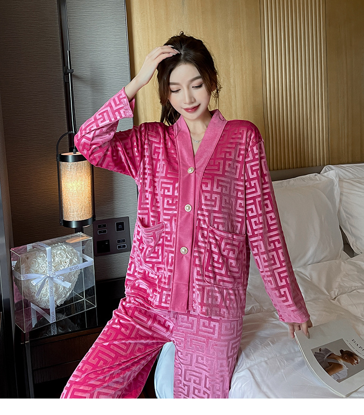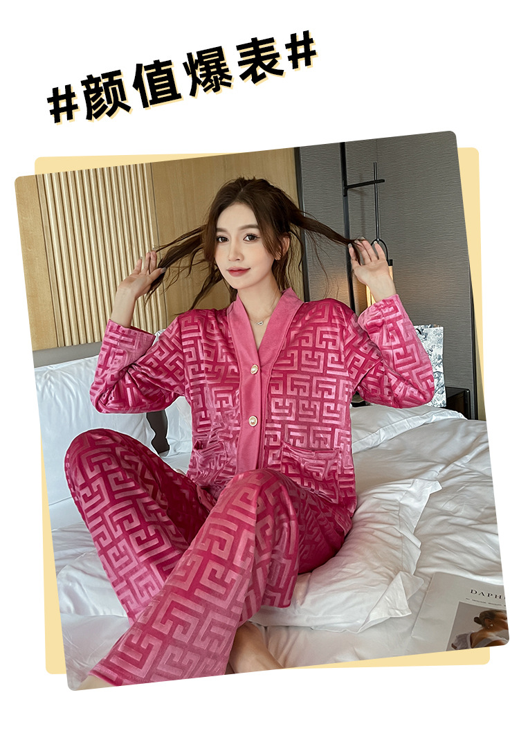 골든 벨벳 고급 한국식 잠옷 스타일 잠옷 여성 가을 겨울 다이아몬드 벨벳 인터넷 연예인 투피스 홈 옷스토어 가기