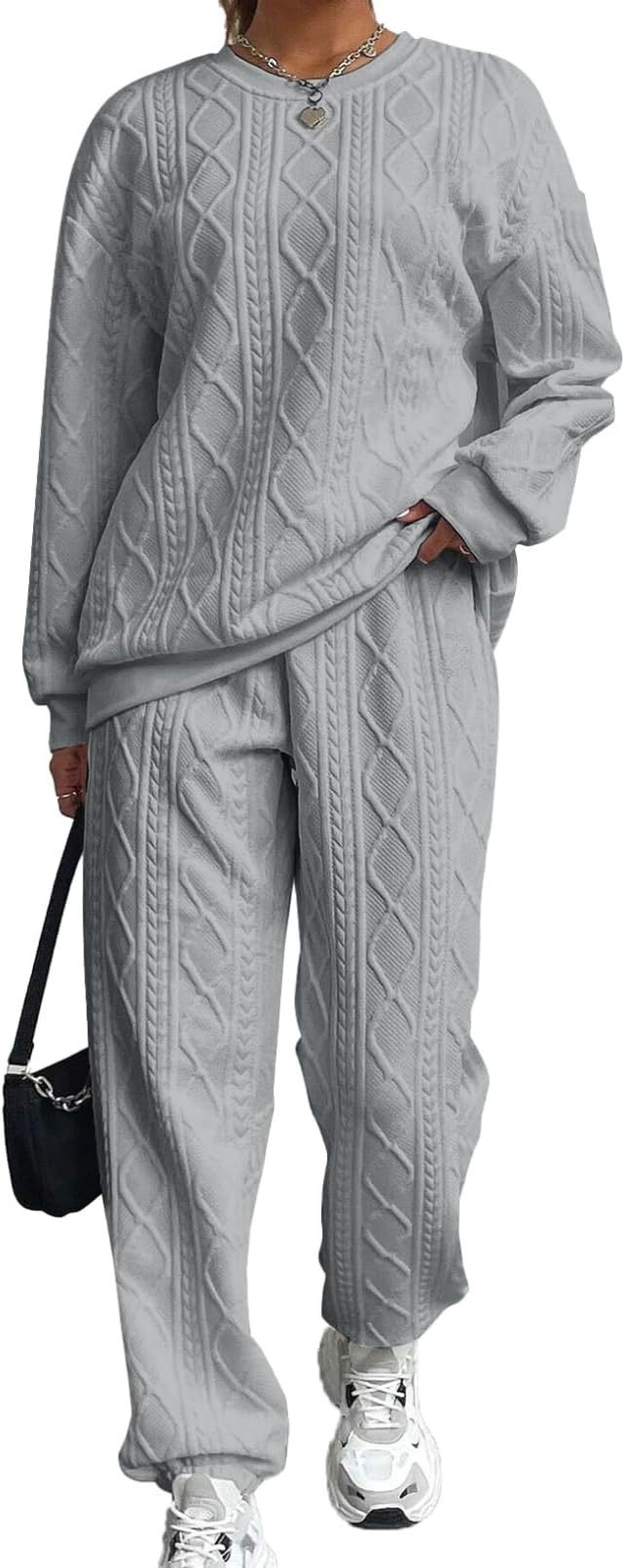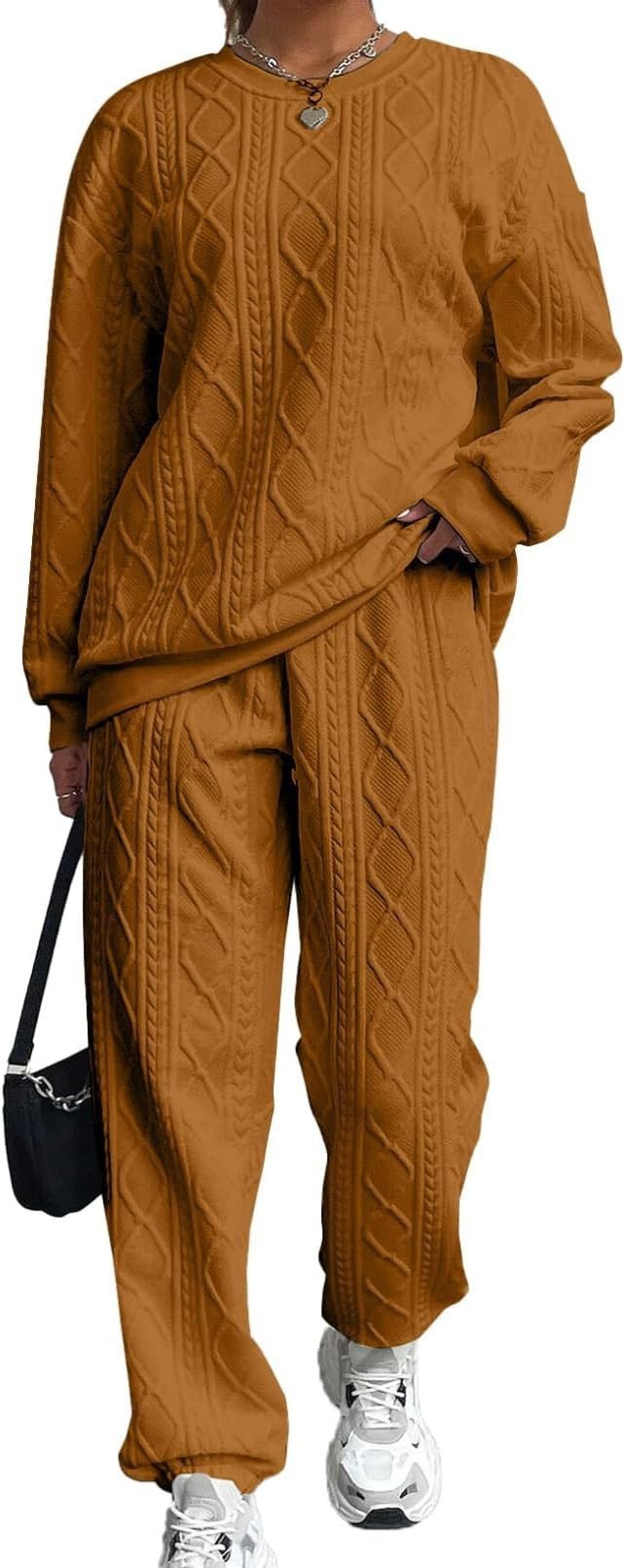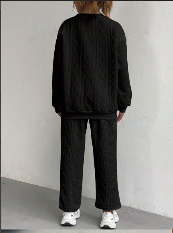 2025 가을 겨울 국경 유럽과 미국의 새로운 여성 트위스트 스티치 긴팔 라운드 넥 탑과 바지 투피스 세트