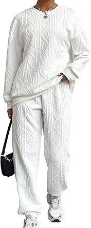 2025 가을 겨울 국경 유럽과 미국의 새로운 여성 트위스트 스티치 긴팔 라운드 넥 탑과 바지 투피스 세트스토어 가기