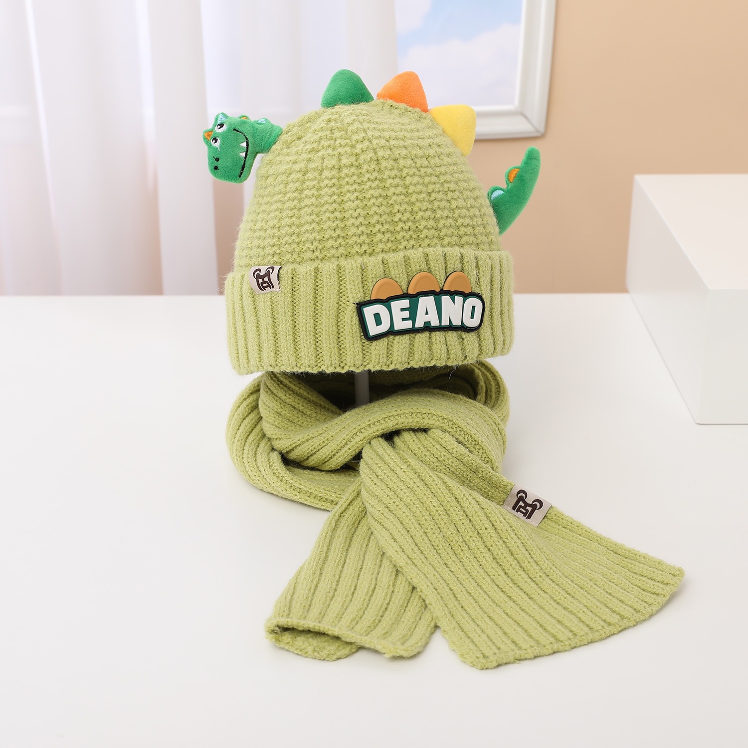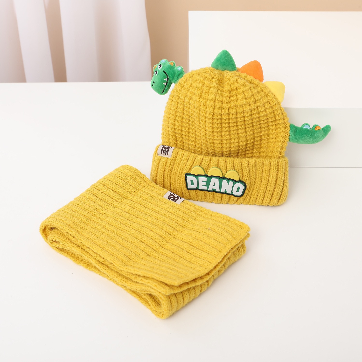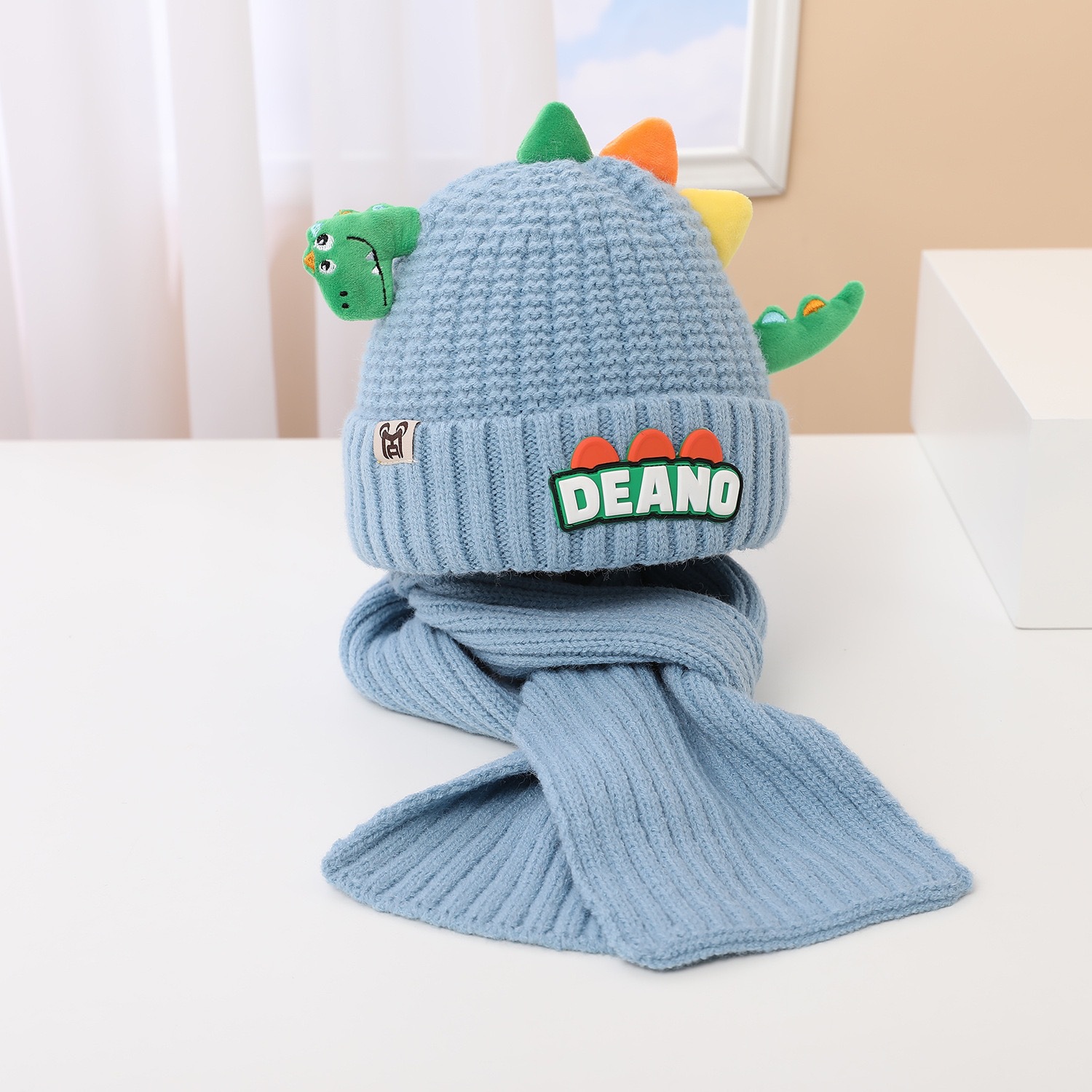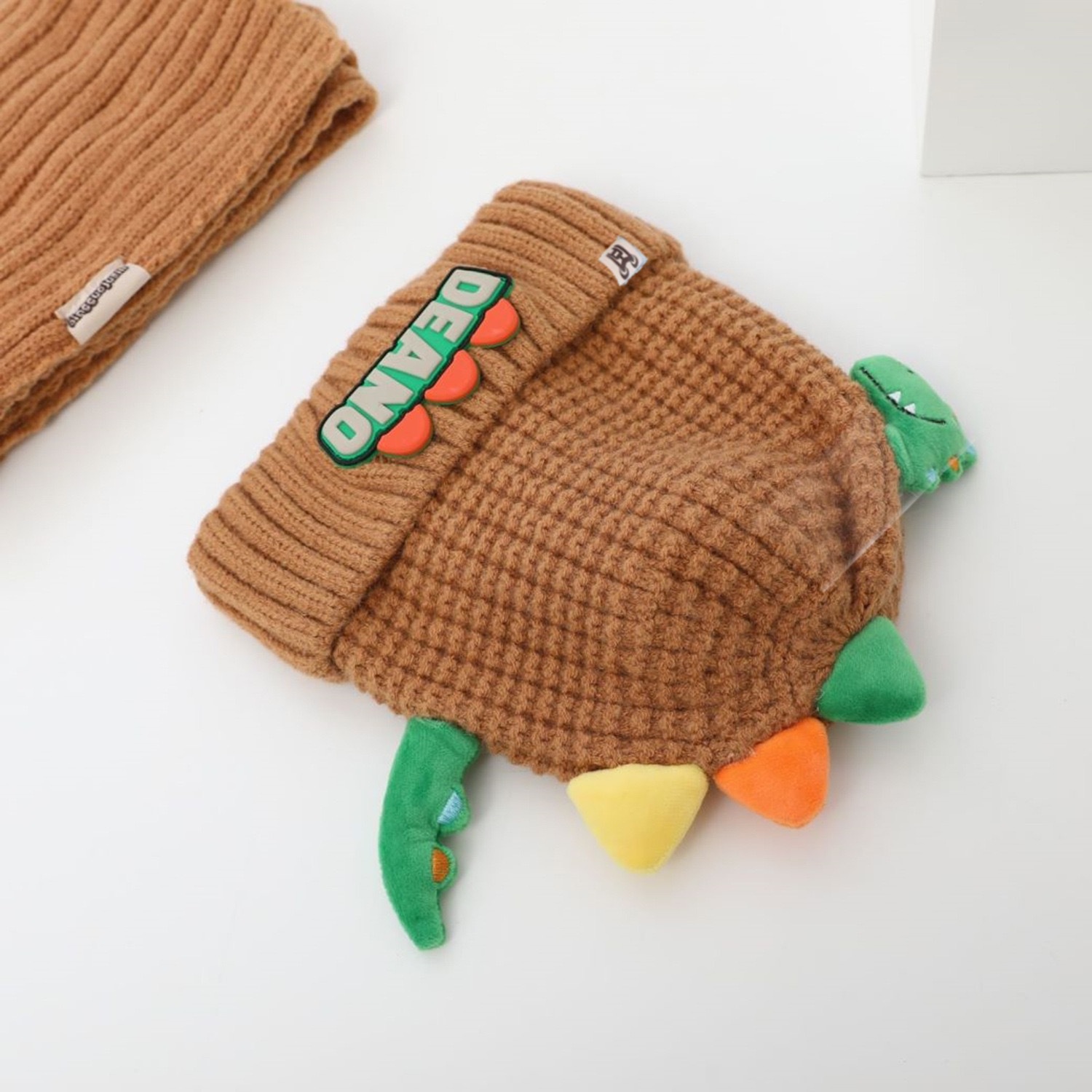 새로운 어린이 모자 스카프 투피스 세트 귀여운 작은 공룡 따뜻한 니트 울 캡 야외 어린이 풀오버 캡스토어 가기