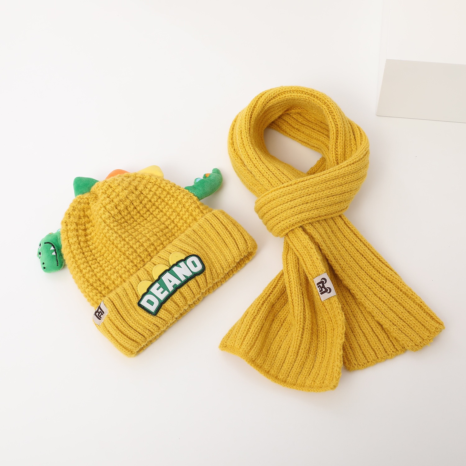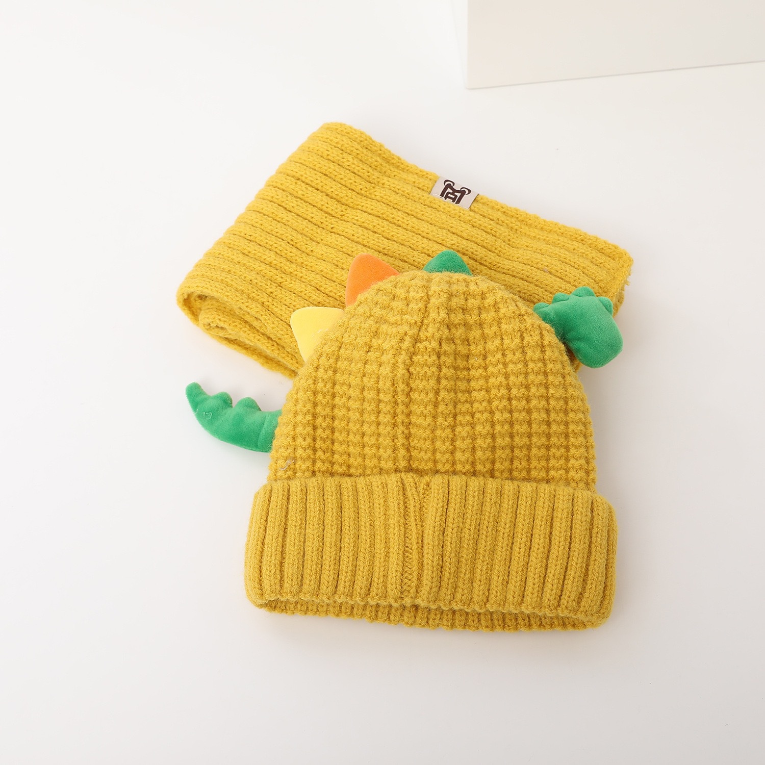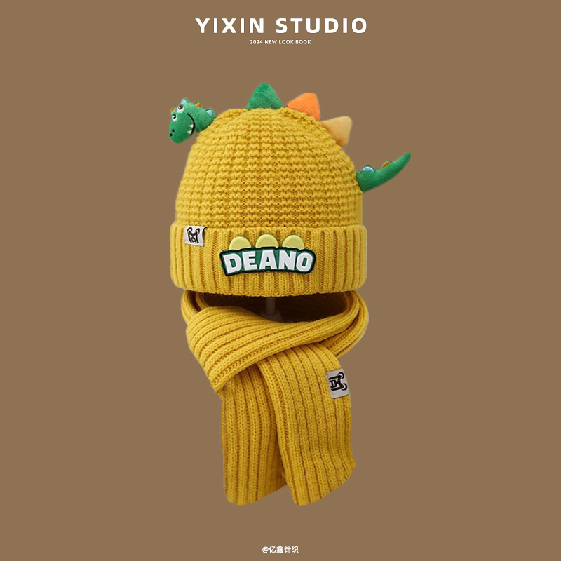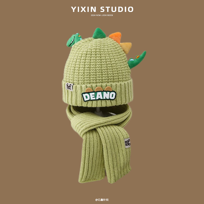 새로운 어린이 모자 스카프 투피스 세트 귀여운 작은 공룡 따뜻한 니트 울 캡 야외 어린이 풀오버 캡