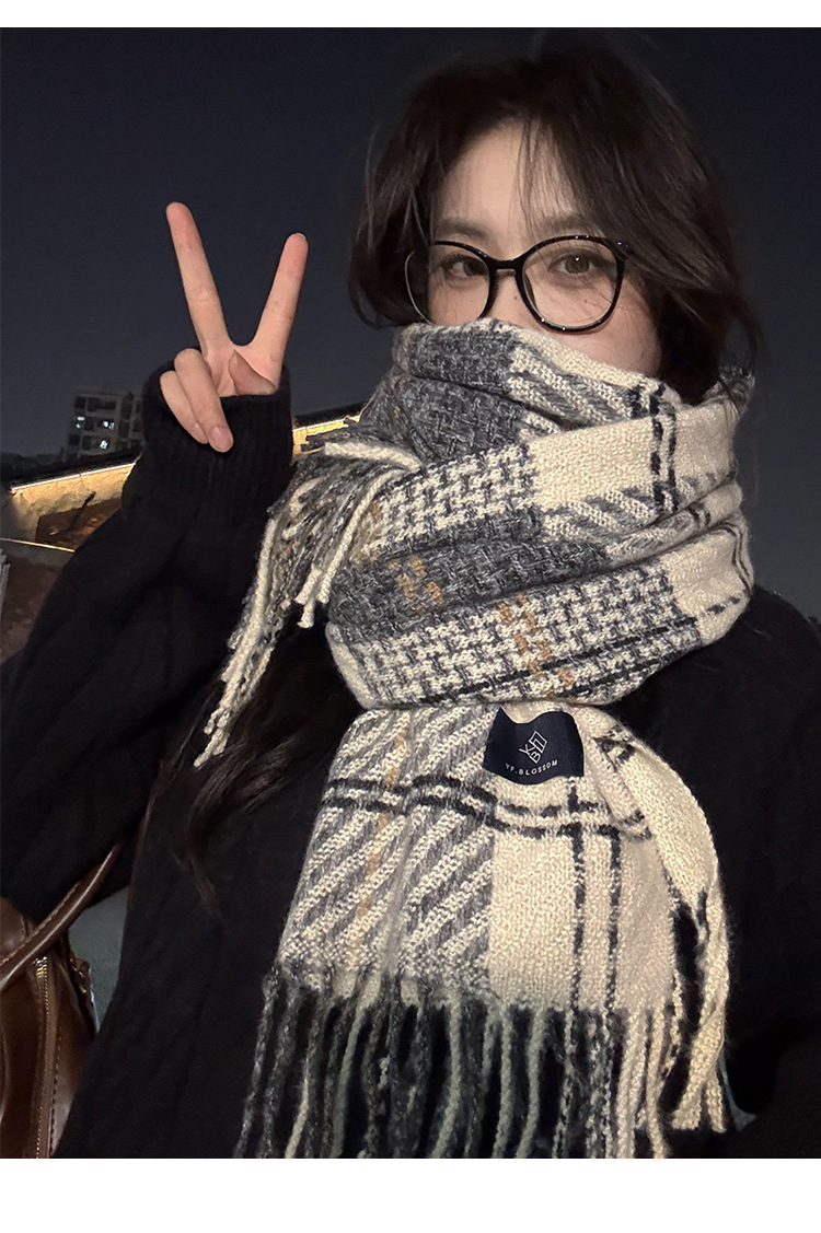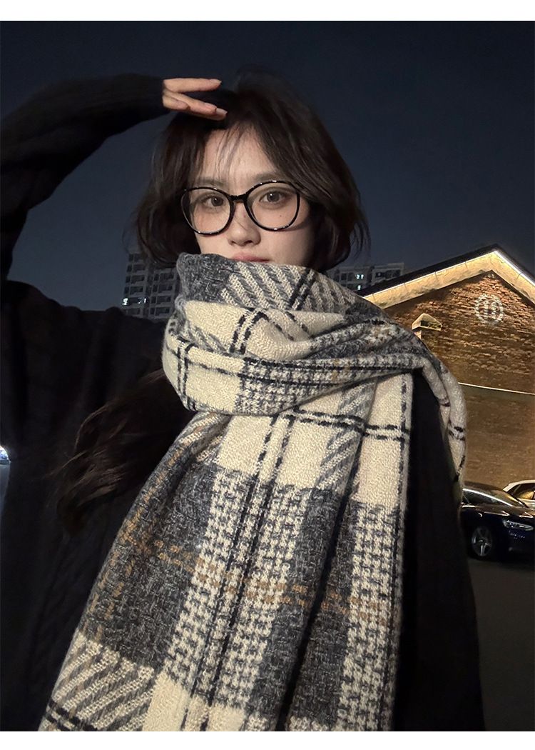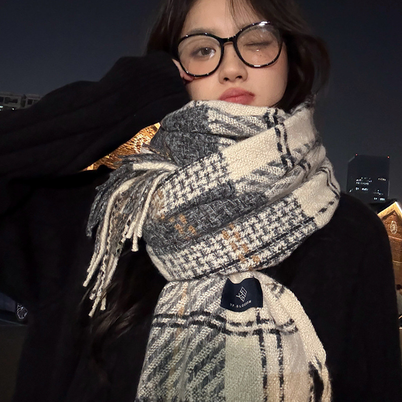 가을과 겨울 하이 엔드 기질 블루 한국식 체크 무늬 스카프 큰 크기 목도리가 따뜻한 올 매치 스카프를 두껍게 할 때스토어 가기